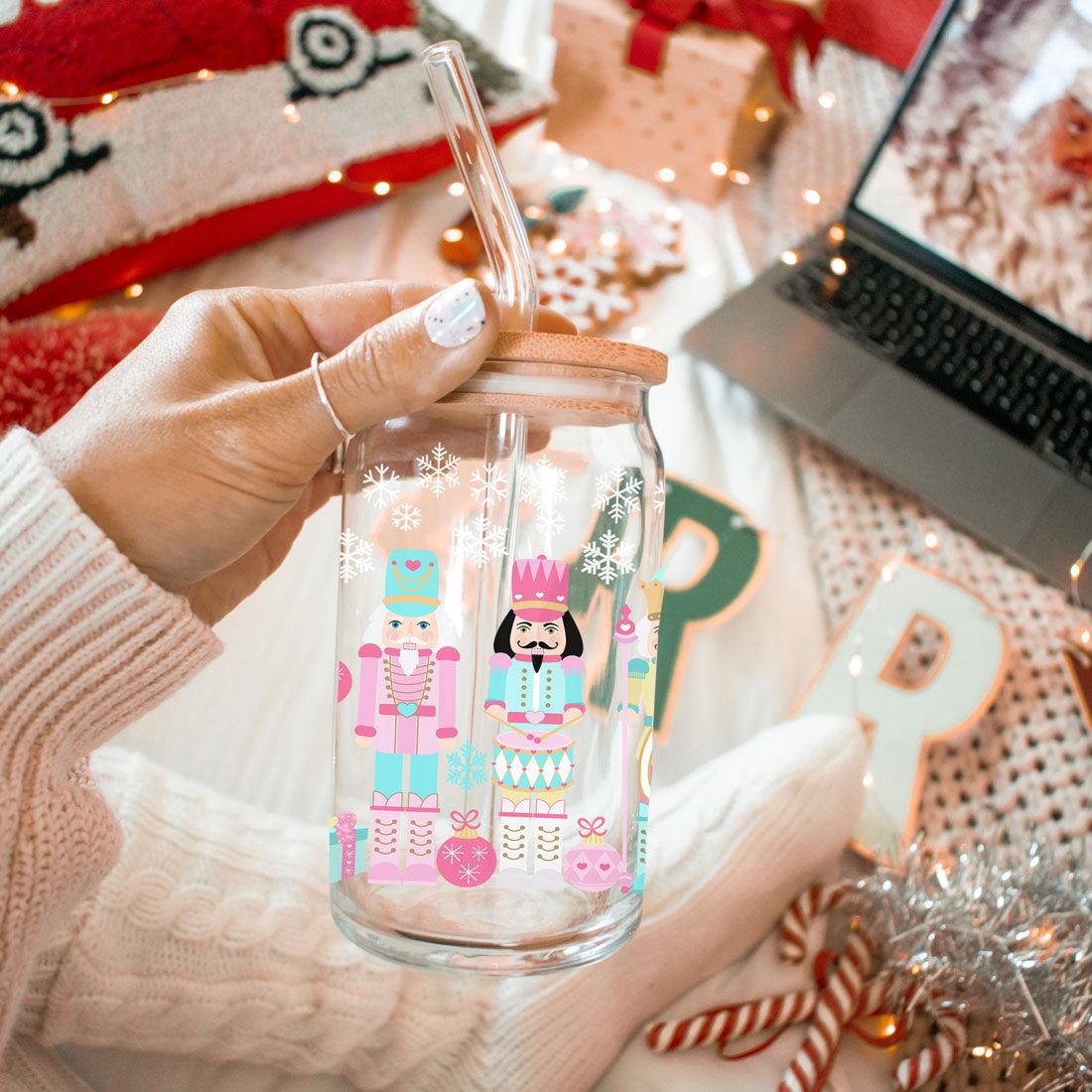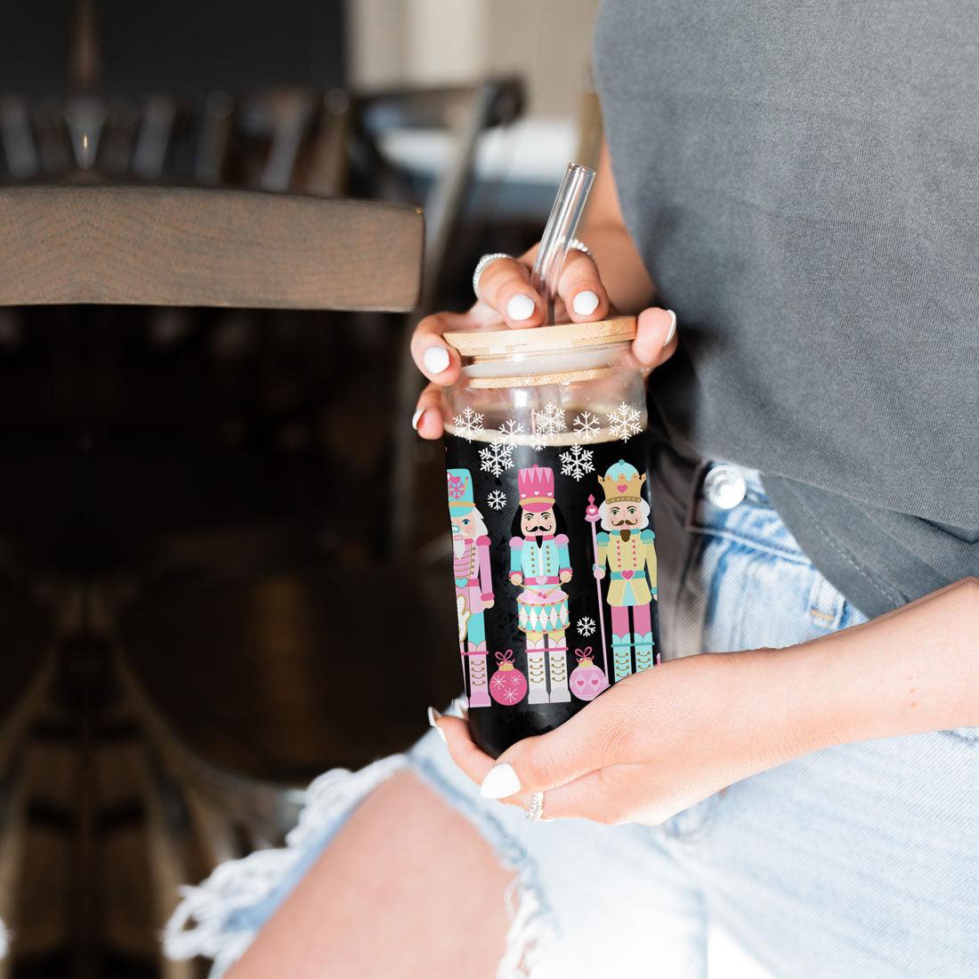 One of the standout features of this cup is its bamboo lid, which adds a touch of elegance while keeping your drinks secure. The cup also comes with both a glass bent straw and a glass straight straw, along with a straw cleaner, making it a complete set for your drinking pleasure. The full graphic wrap design ensures that the charming nutcracker theme is visible from all angles, making it a delightful gift for yourself or a loved one.
