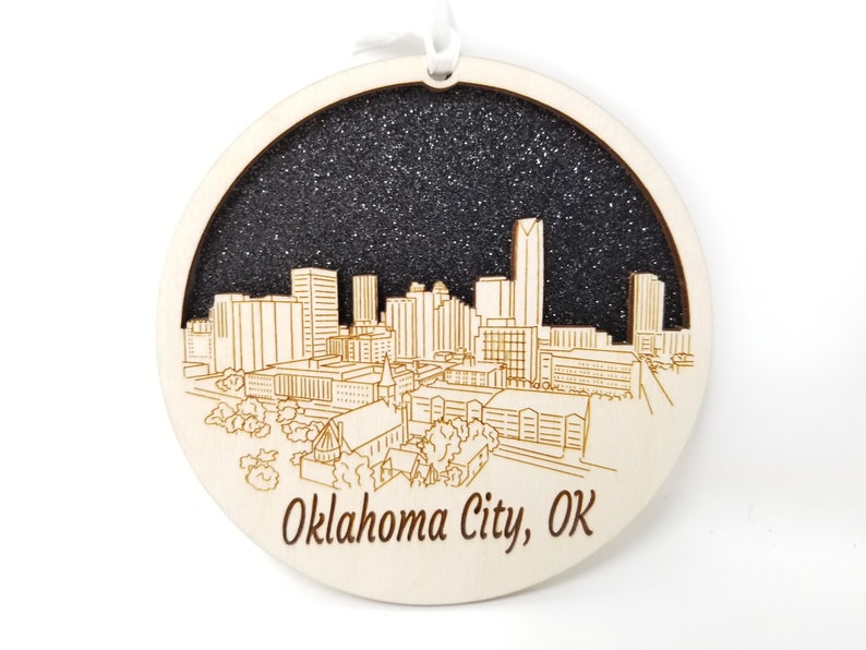 Introducing the stunning Oklahoma City Skyline Ornament, a beautifully crafted piece that captures the essence of your beloved city. Made from premium Baltic birch wood, this ornament is not only a decorative item but also a symbol of your love for Oklahoma City. Its intricate design showcases the iconic skyline, making it a perfect addition to your holiday decor or a thoughtful gift for friends and family who share your passion for this vibrant city.