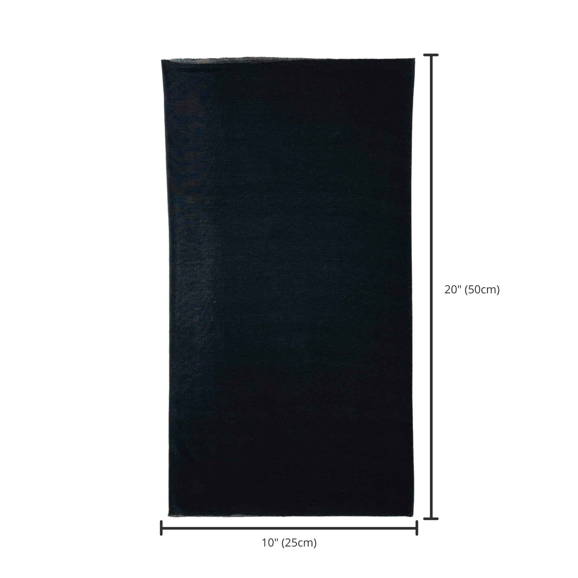 The Hemless Neck Gaiter is made from 130gsm 100% microfiber spandex polyester, providing durability and comfort. Its dimensions are 10" x 20" (25cm x 50cm), making it suitable for most users. The one-size-fits-all design features elastic material that provides a snug fit, ensuring it stays in place during long outdoor activities.