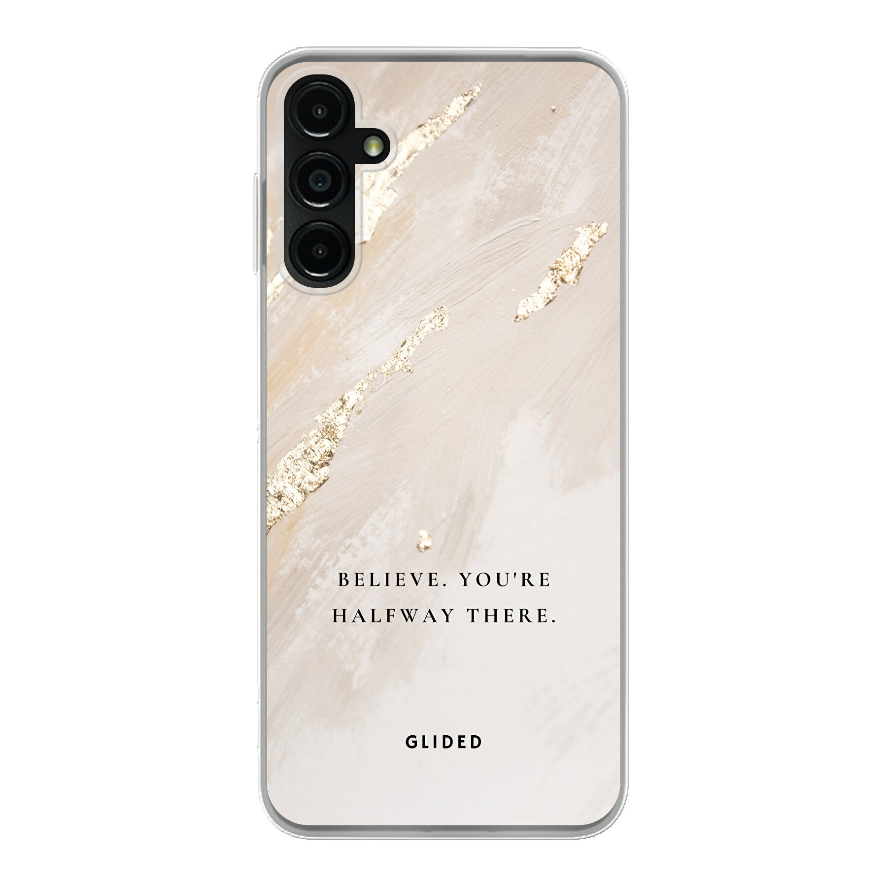Entdecke die inspirierende "Believe" Handyhülle für dein Samsung Galaxy A14 5G. Diese Hülle ist mehr als nur ein Schutz; sie ist eine tägliche Erinnerung daran, an dich selbst zu glauben. Mit dem kraftvollen Spruch "Believe. You're halfway there" auf einem ansprechenden Hintergrund, bietet diese Hülle sowohl ästhetischen Reiz als auch praktische Funktionalität.