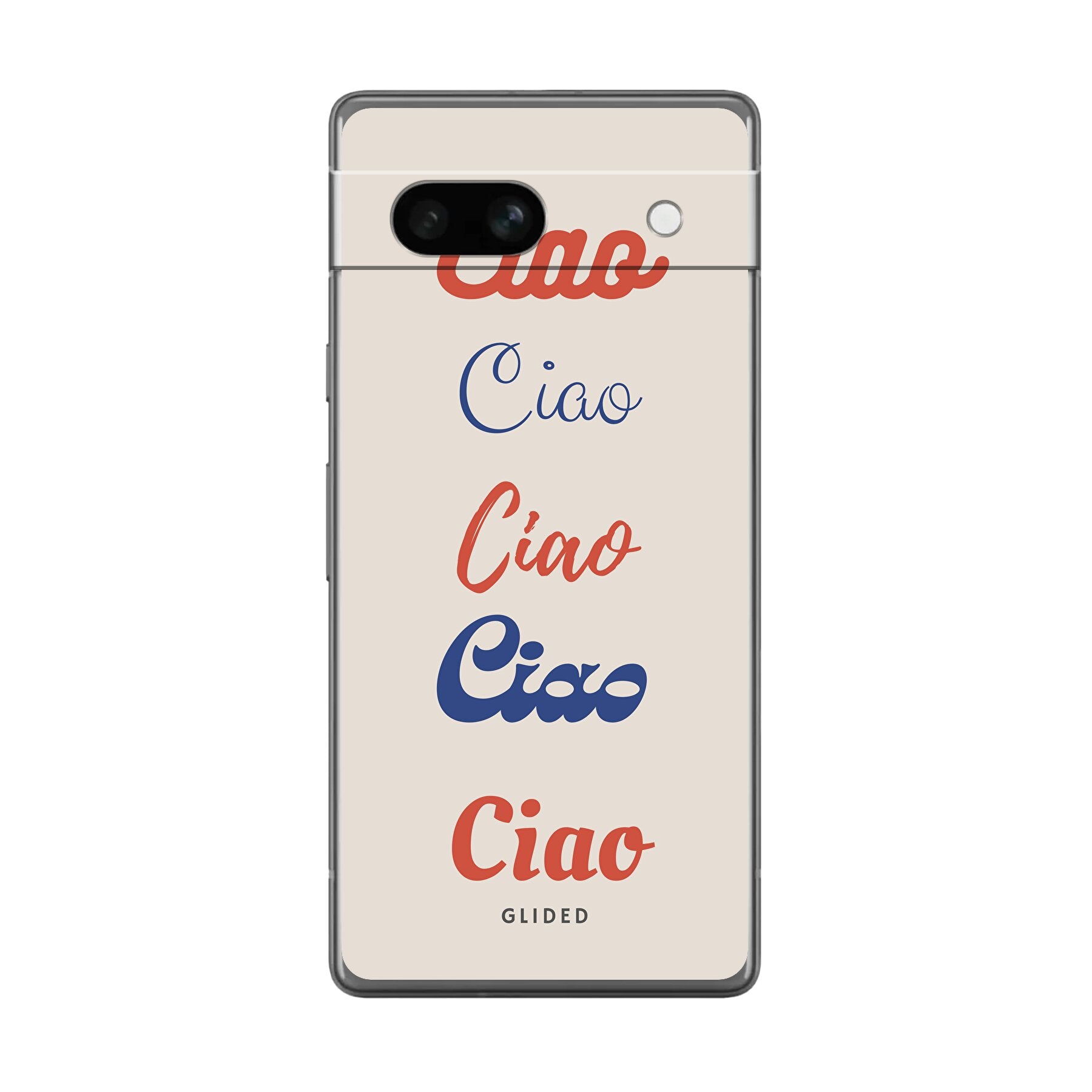Die Ciao Handyhülle hebt sich durch ihr einzigartiges Design ab. Das wiederholte Wort "Ciao" ist nicht nur eine Begrüßung, sondern auch ein Ausdruck von Lebensfreude. Diese Hülle ist perfekt für alle, die ihre Liebe zur italienischen Sprache und Kultur zeigen möchten. Sie ist ein echter Hingucker und sorgt dafür, dass dein Google Pixel 7a immer stilvoll aussieht.