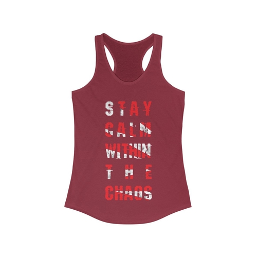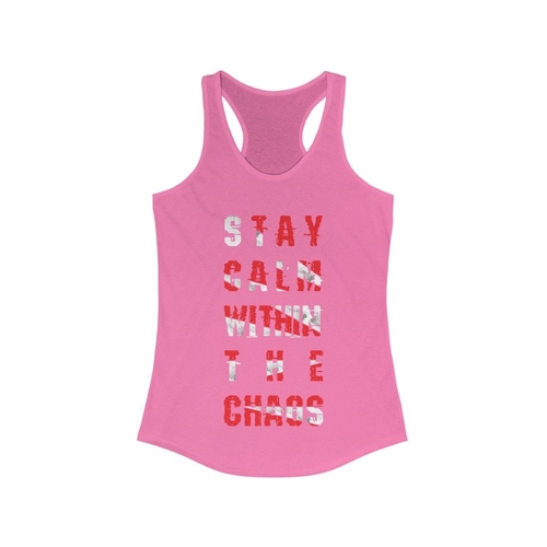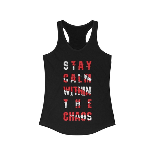The Stay Calm within the Chaos Racerback Tank Top is the perfect blend of style and comfort for those who lead an active lifestyle. Made from a soft cotton and polyester blend, this tank top is designed to keep you feeling great whether you're hitting the gym, going for a run, or simply lounging at home. With its slim fit design, it flatters your figure while providing the freedom of movement you need during workouts.