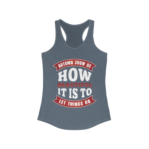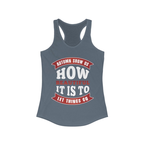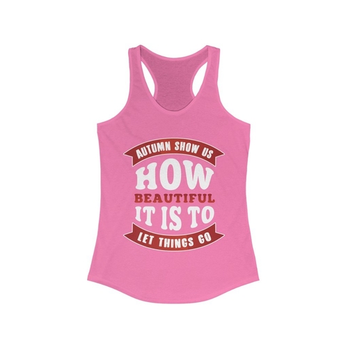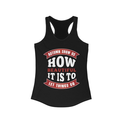 The Autumn Show us How Beautiful It is to Let Things Go Racerback Tank Top is a must-have addition to your fall wardrobe. This stylish tank top features a unique autumn-themed design that captures the essence of the season, reminding us of the beauty in letting go. Made with a slim fit, this tank top is designed to flatter your figure while providing comfort and versatility. Whether you're heading out for a casual day with friends, hitting the gym, or simply enjoying a cozy day at home, this racerback tank top is the perfect choice. The racerback style allows for a full range of motion, making it ideal for workouts or outdoor activities. However, please note that this tank top runs smaller than usual, so it’s advisable to check the sizing chart before making your purchase to ensure the perfect fit. The item number for this product is #1000Q346, which can be useful for reference when shopping online or in-store. Pair this tank top with your favorite jeans, leggings, or shorts for a chic and effortless look. The autumn color palette and inspirational message make it a great conversation starter and a wonderful way to express your personal style. Additionally, this tank top is made from high-quality materials that are soft against the skin, ensuring all-day comfort. It’s also easy to care for, making it a practical choice for your busy lifestyle. As the leaves change and the air turns crisp, this tank top serves as a reminder to embrace the beauty of change and the importance of letting go. It’s not just a piece of clothing; it’s a statement about your attitude towards life and the seasons. Whether you’re enjoying a pumpkin spice latte at your favorite café or going for a brisk walk in the park, this tank top will keep you looking stylish and feeling great. Don’t miss out on the opportunity to add this beautiful piece to your collection. It’s perfect for gifting to friends or family who appreciate unique fashion items that resonate with the spirit of the season. The Autumn Show us How Beautiful It is to Let Things Go Racerback Tank Top is more than just a seasonal item; it’s a versatile piece that can be worn year-round. Layer it under a cardigan or jacket during the colder months, or wear it alone during warmer days. Its timeless design ensures that it will remain a staple in your wardrobe for years to come. Invest in quality and style with this tank top that celebrates the beauty of autumn and the art of letting go.
