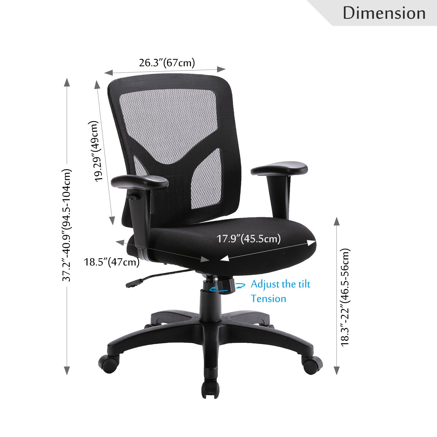 This office chair meets BIFMA standards, ensuring that it is built to last. With a weight capacity of 250 pounds, it is suitable for a wide range of users. The chair's overall dimensions are 26.37 inches wide by 25.98 inches deep, making it a compact yet comfortable option for any workspace. The chair weighs 35 pounds, making it sturdy yet easy to move around your office or home.