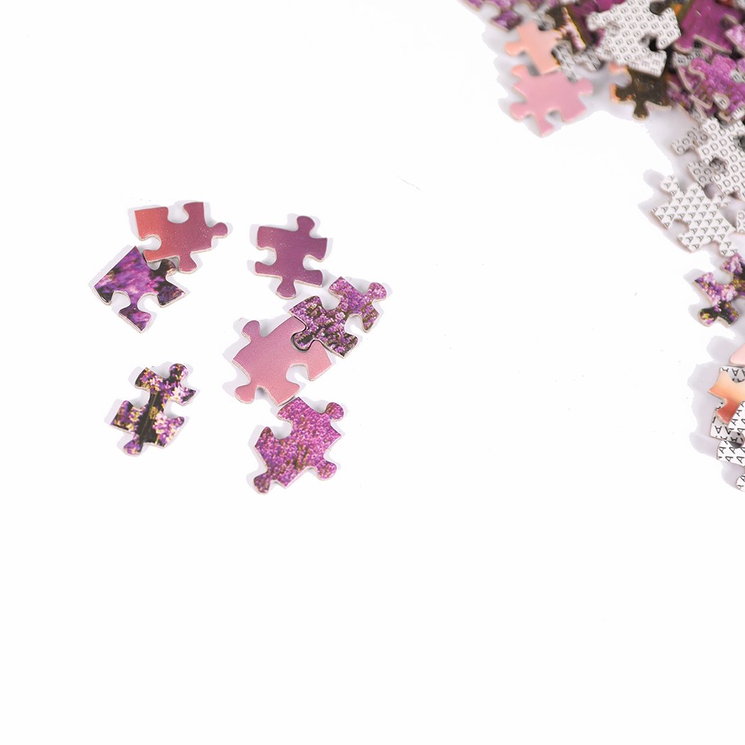 Our jigsaw puzzle is crafted from premium cardboard that resists cracking, ensuring durability and longevity. Each piece is precision-cut to fit perfectly, creating a seamless image that resembles a true picture. The high-resolution printing captures the beautiful lavender design, making it a stunning addition to your puzzle collection.