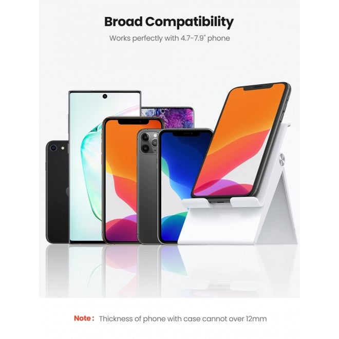 The UGREEN 80704 is designed to accommodate a wide range of devices. It is compatible with smartphones and mini tablets ranging from 4.7 to 7.9 inches in size, with a thickness of up to 0.47 inches, including phone cases. This makes it an excellent choice for users of various brands, including Apple iPhone models such as the iPhone 11 Pro Max, iPhone SE, and Samsung Galaxy devices like the Note 20 and S20 Ultra. Whether you own an LG, Google Pixel, or Moto device, this stand has you covered.