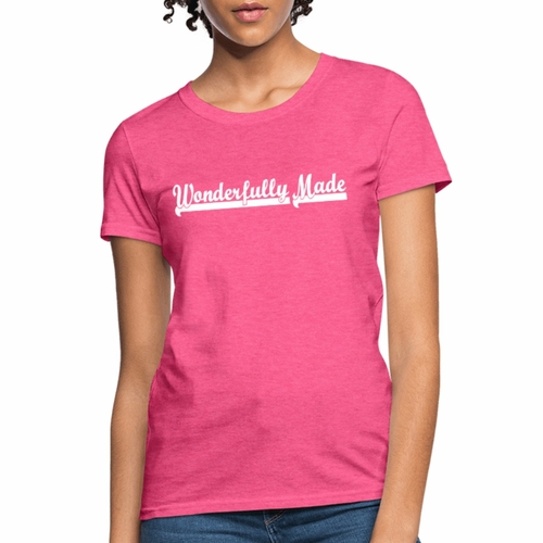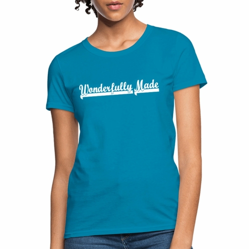Introducing the Wonderfully Made Graphic Tee, a classic women's t-shirt designed for comfort and style. This tee is perfect for everyday wear, offering a relaxed fit that flatters most body types. Made from high-quality materials, it ensures durability and long-lasting wear, making it a staple in your wardrobe.