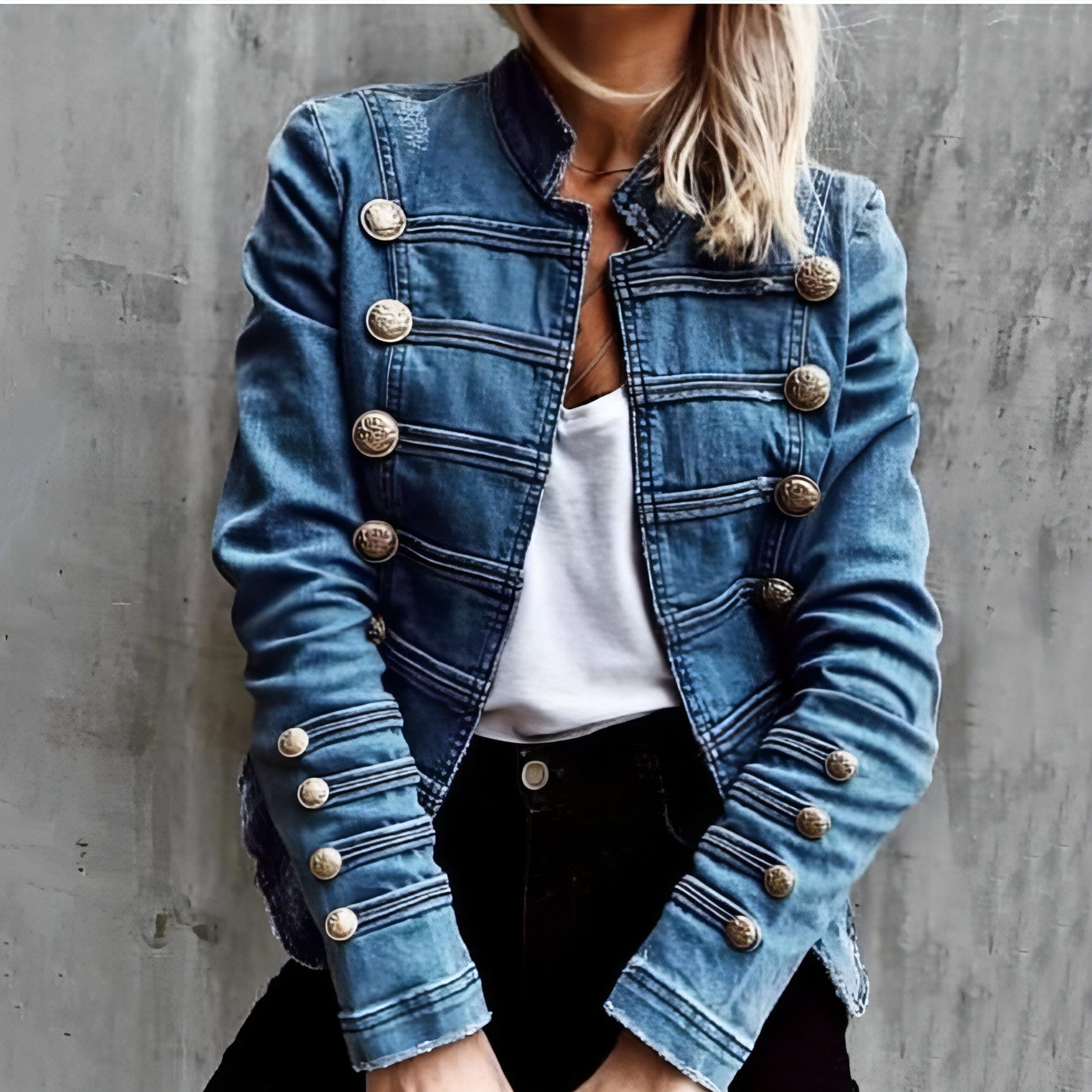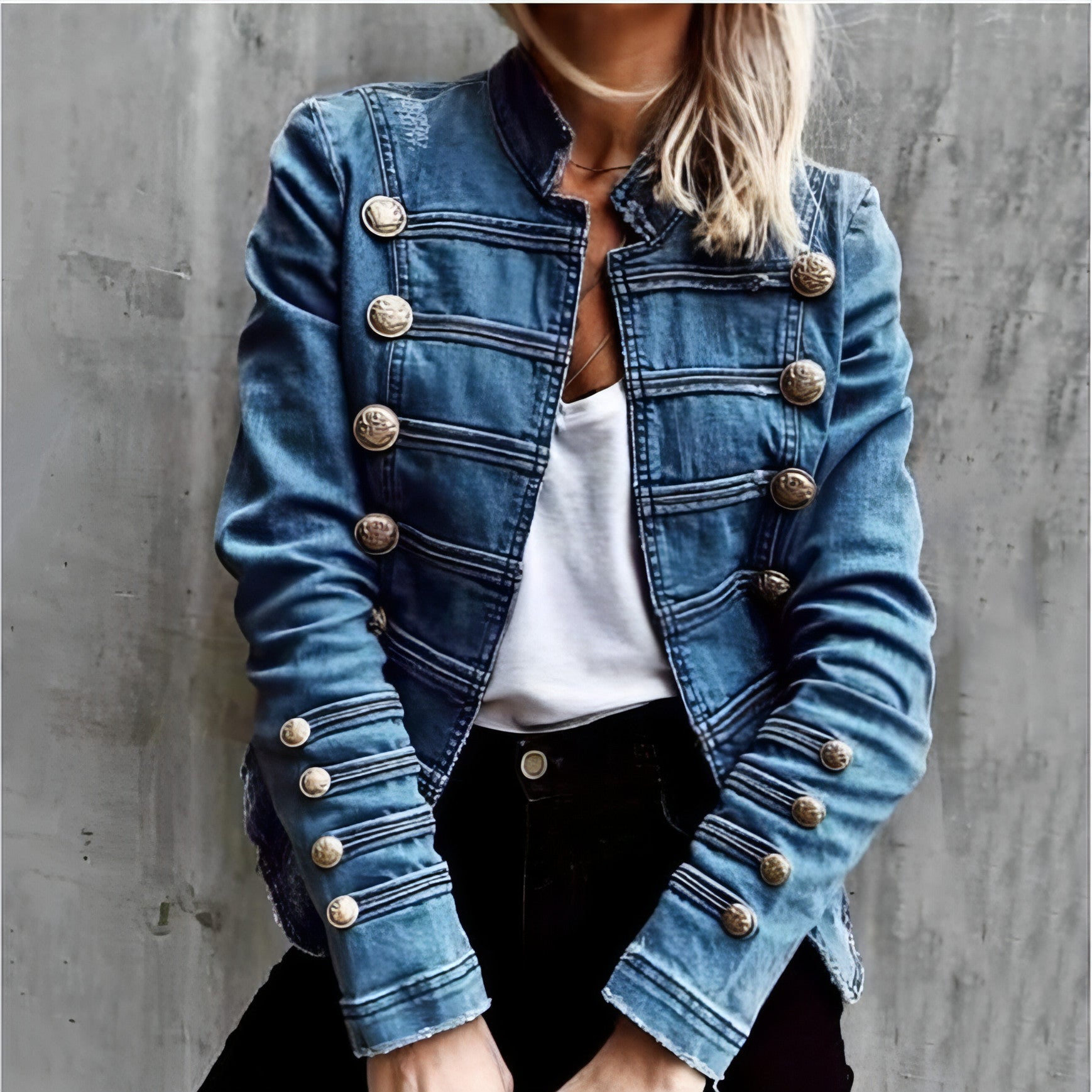 The Clinch Disc With Double-breasted Stitching Button Slim Short Jacket boasts several key features that make it a must-have in your wardrobe: