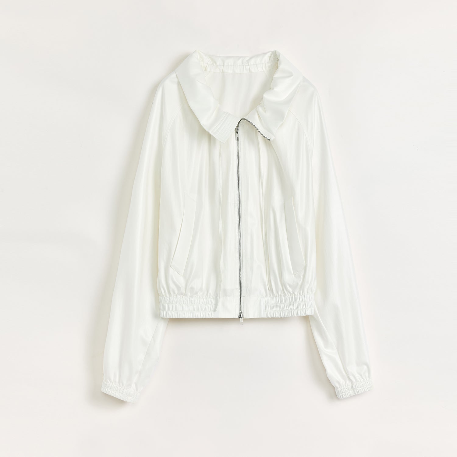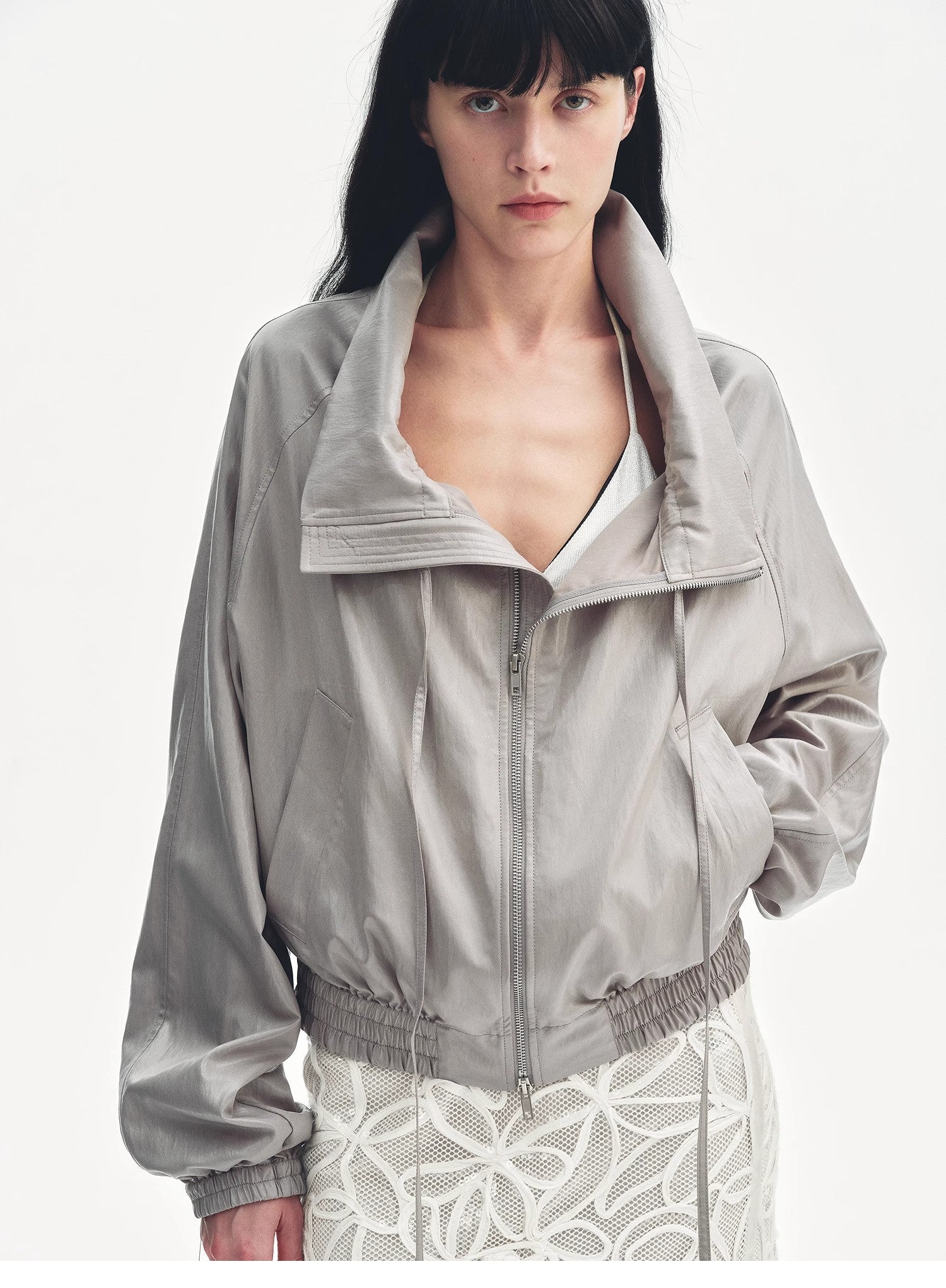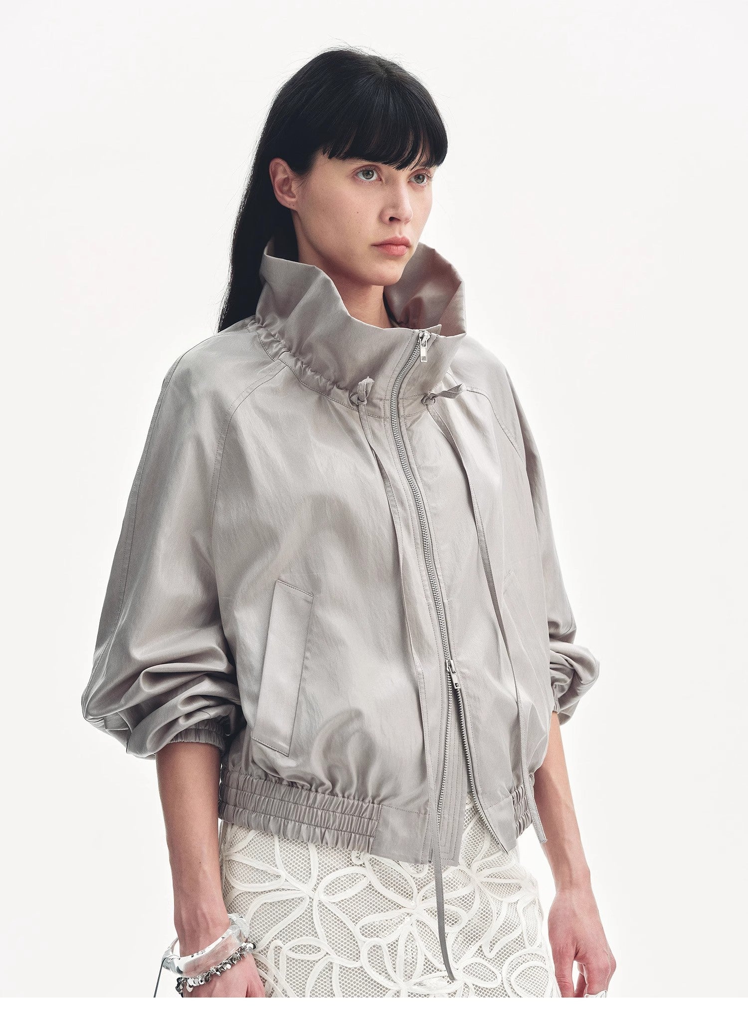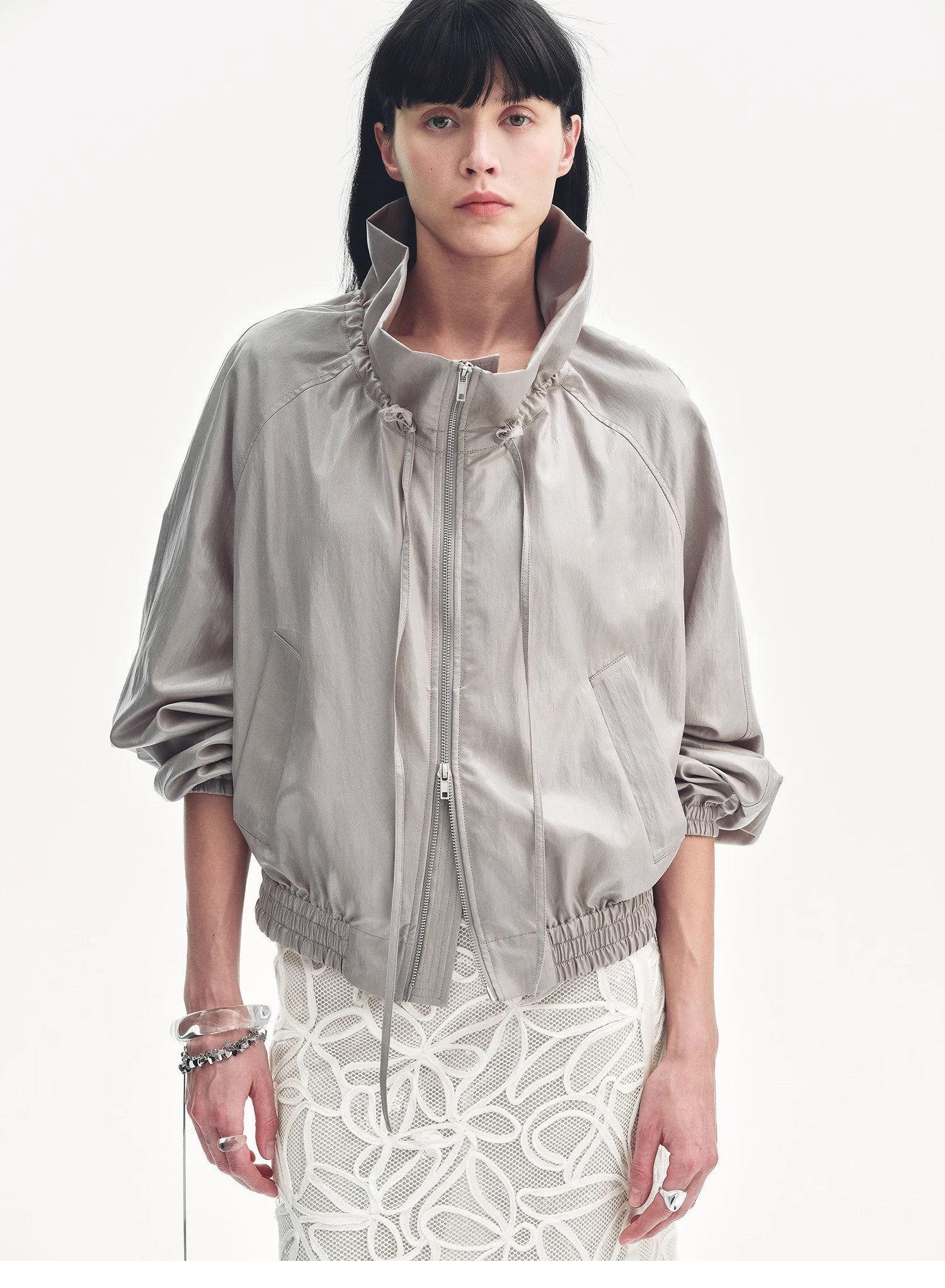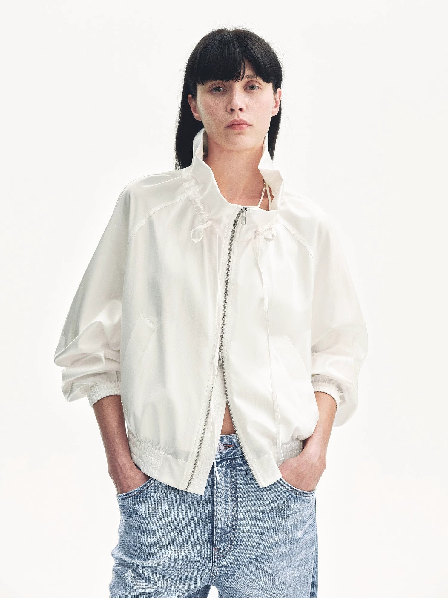 The Front Page Daily drawstring raglan sleeve straight collar jacket is the perfect blend of style and functionality. Designed with a delicate drawstring ruffled stand collar, this jacket not only protects your neck from sunburn but also offers adjustable styling for versatile looks. The double-zipper drop shoulder design provides a relaxed fit, making it ideal for casual outings or outdoor adventures.