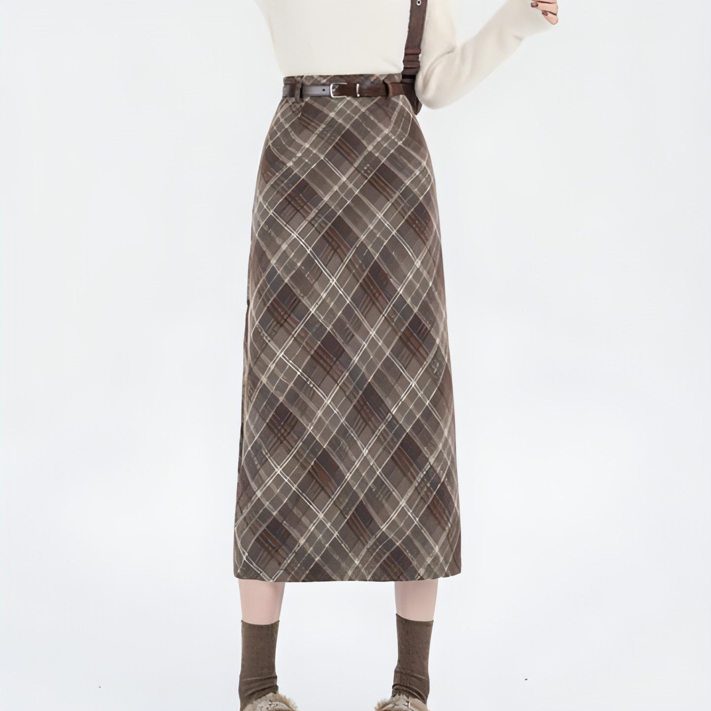 One of the standout features of the High Waist Mid-length Woolen Plaid Skirt is its mid-length cut. This design strikes the perfect balance between elegance and comfort, allowing you to move freely while maintaining a polished appearance. The high waist design not only flatters your figure but also elongates your legs, creating a stunning silhouette that enhances your overall look.