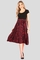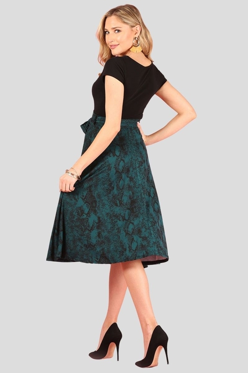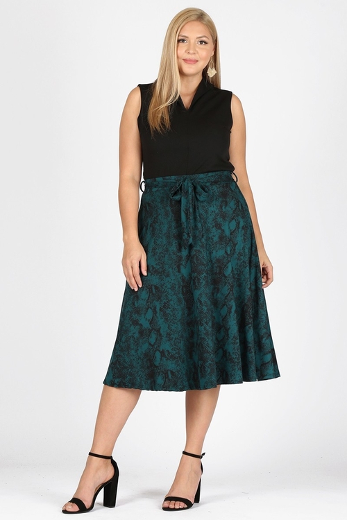 Print, high waist, midi skirt in a relaxed fit with an elastic waist band, and a removable waist tie. Length is 29".
