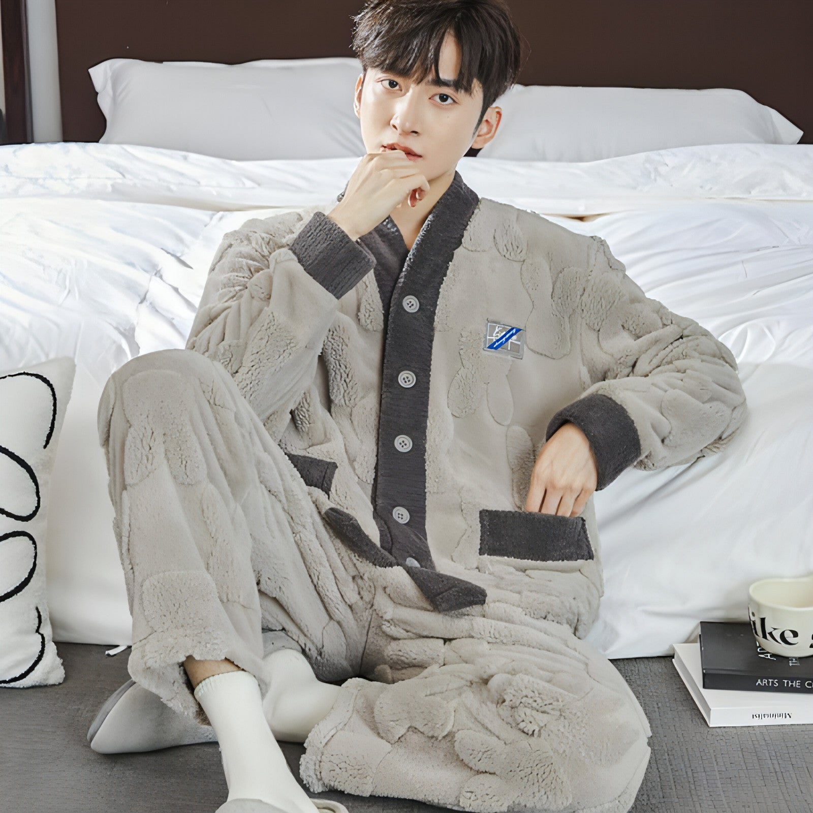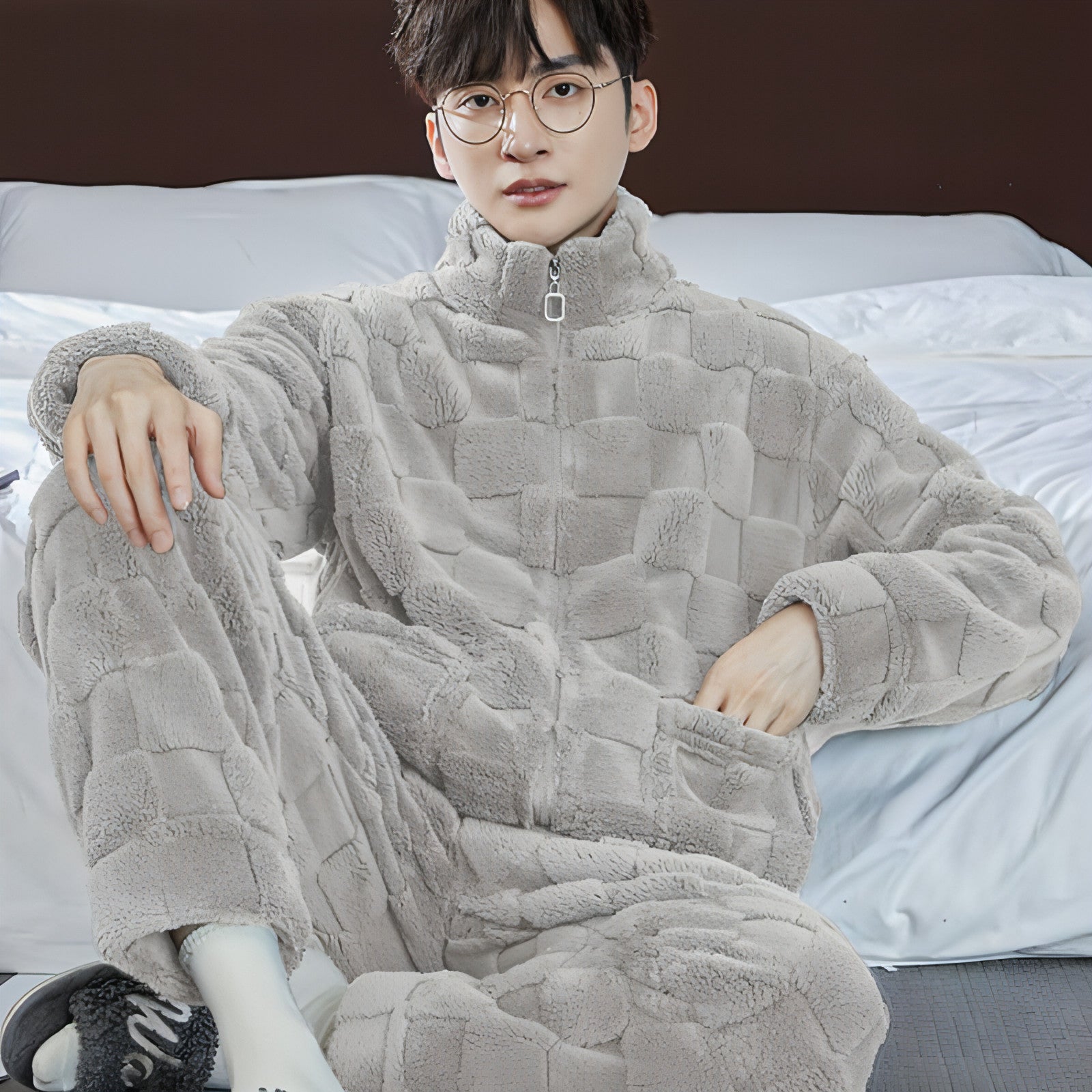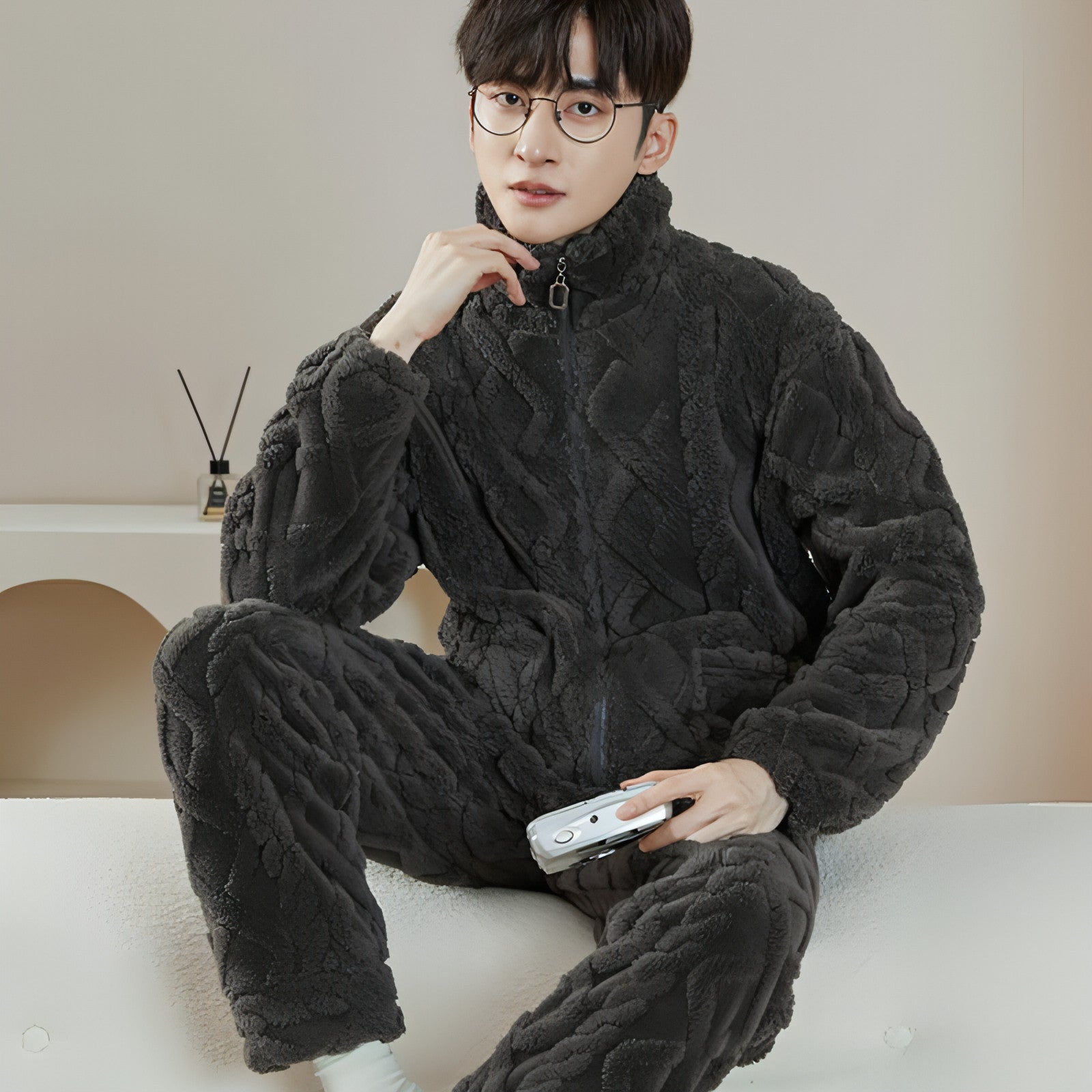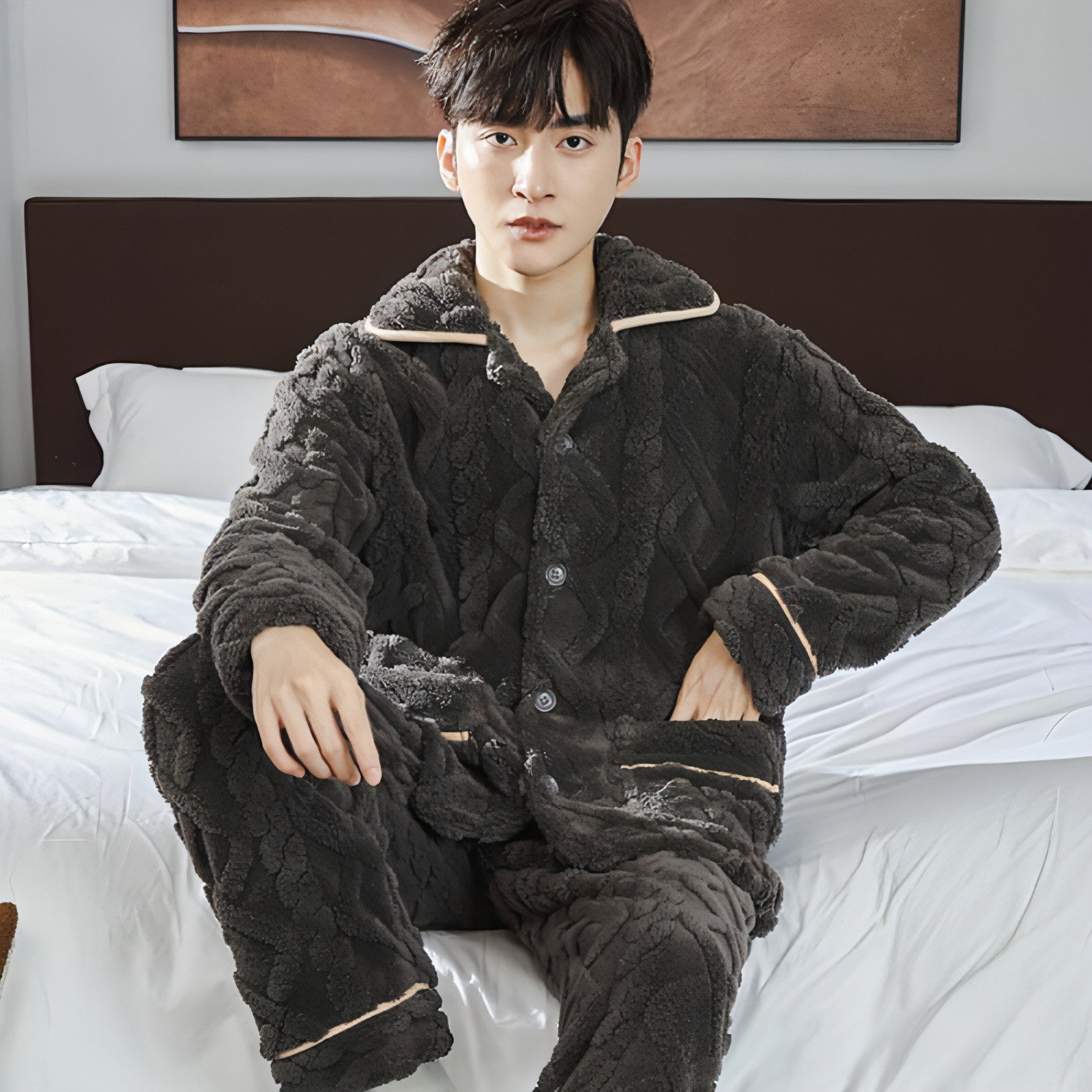 Don't miss out on the chance to elevate your loungewear with our Men's Jacquard Flannel Loose Fleece-lined Warm Loungewear. Experience the perfect blend of style and comfort that will keep you warm all winter long. Order yours today and enjoy the luxury of cozy pajamas that look as good as they feel!