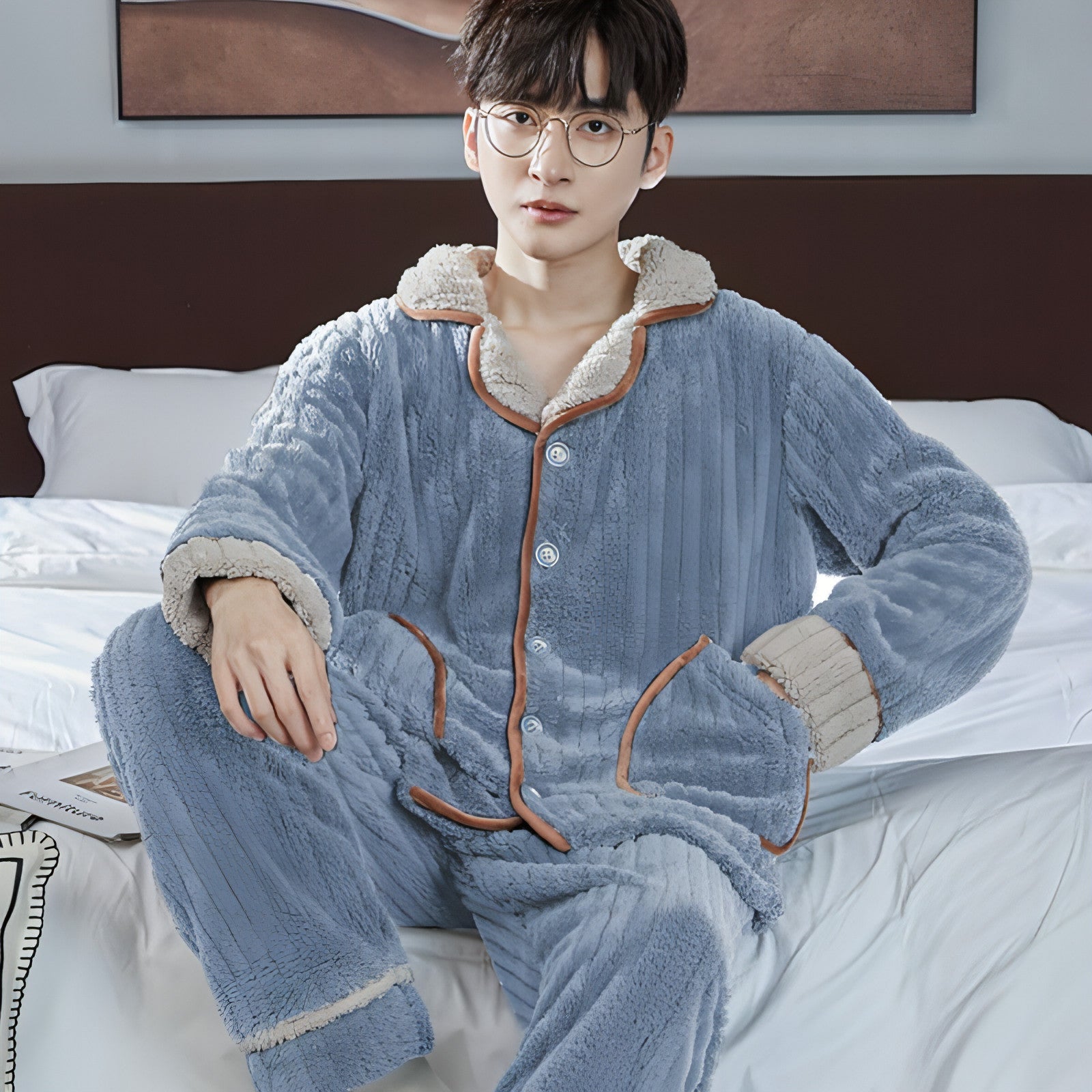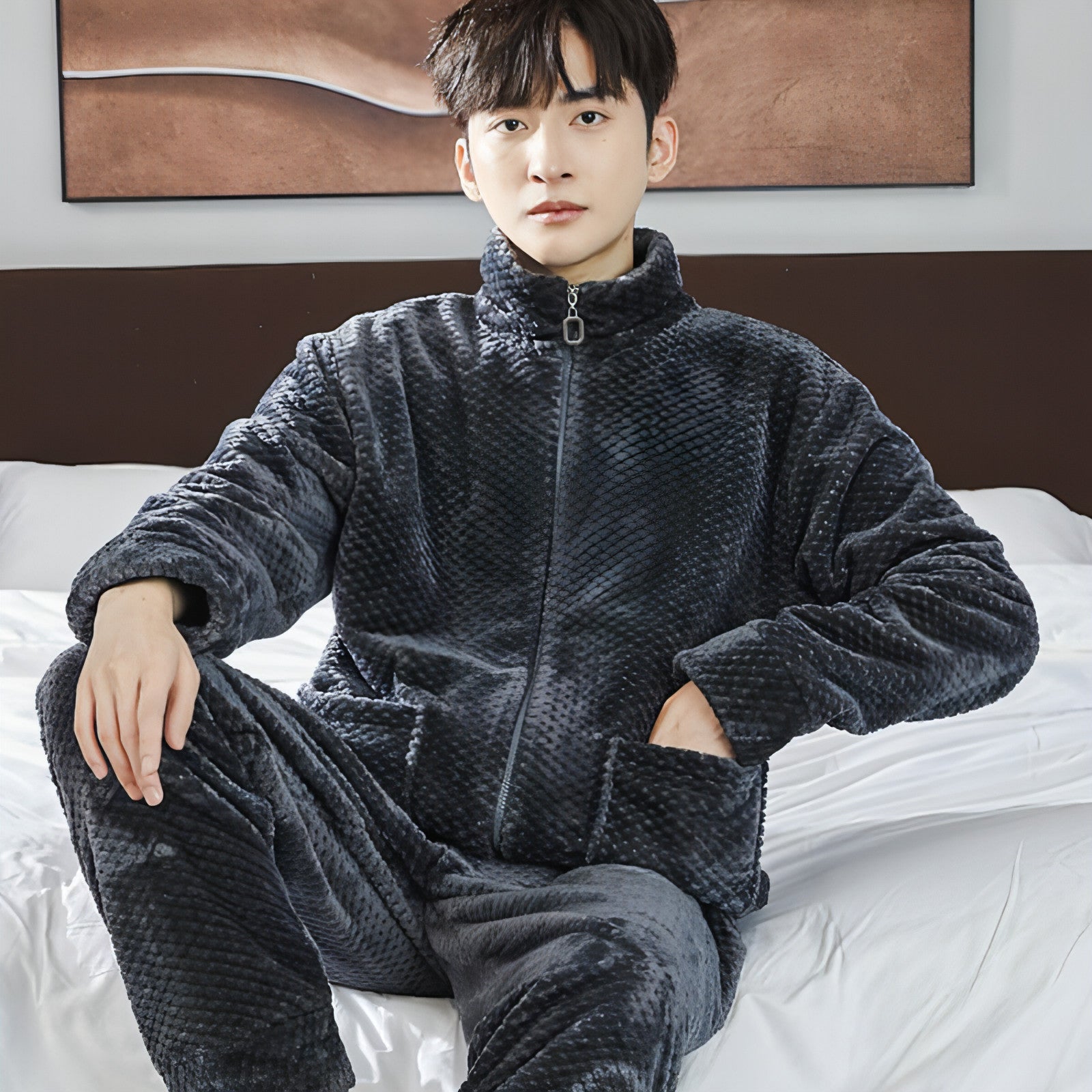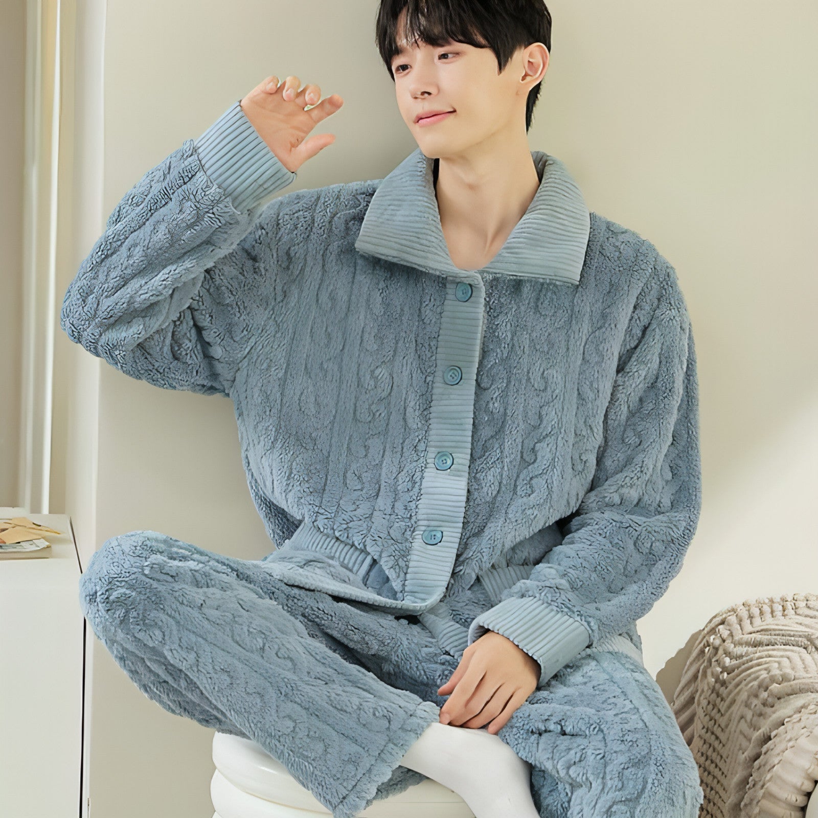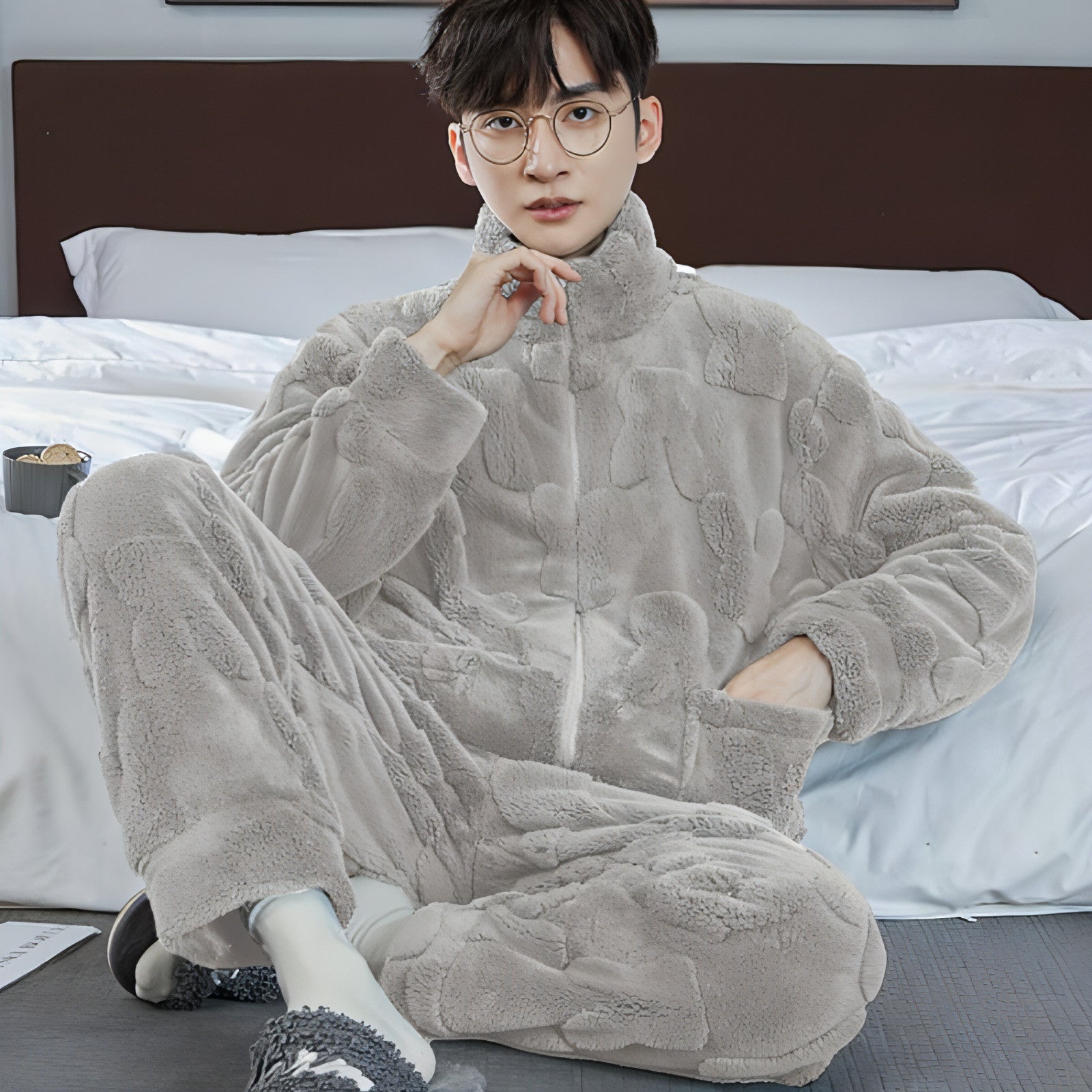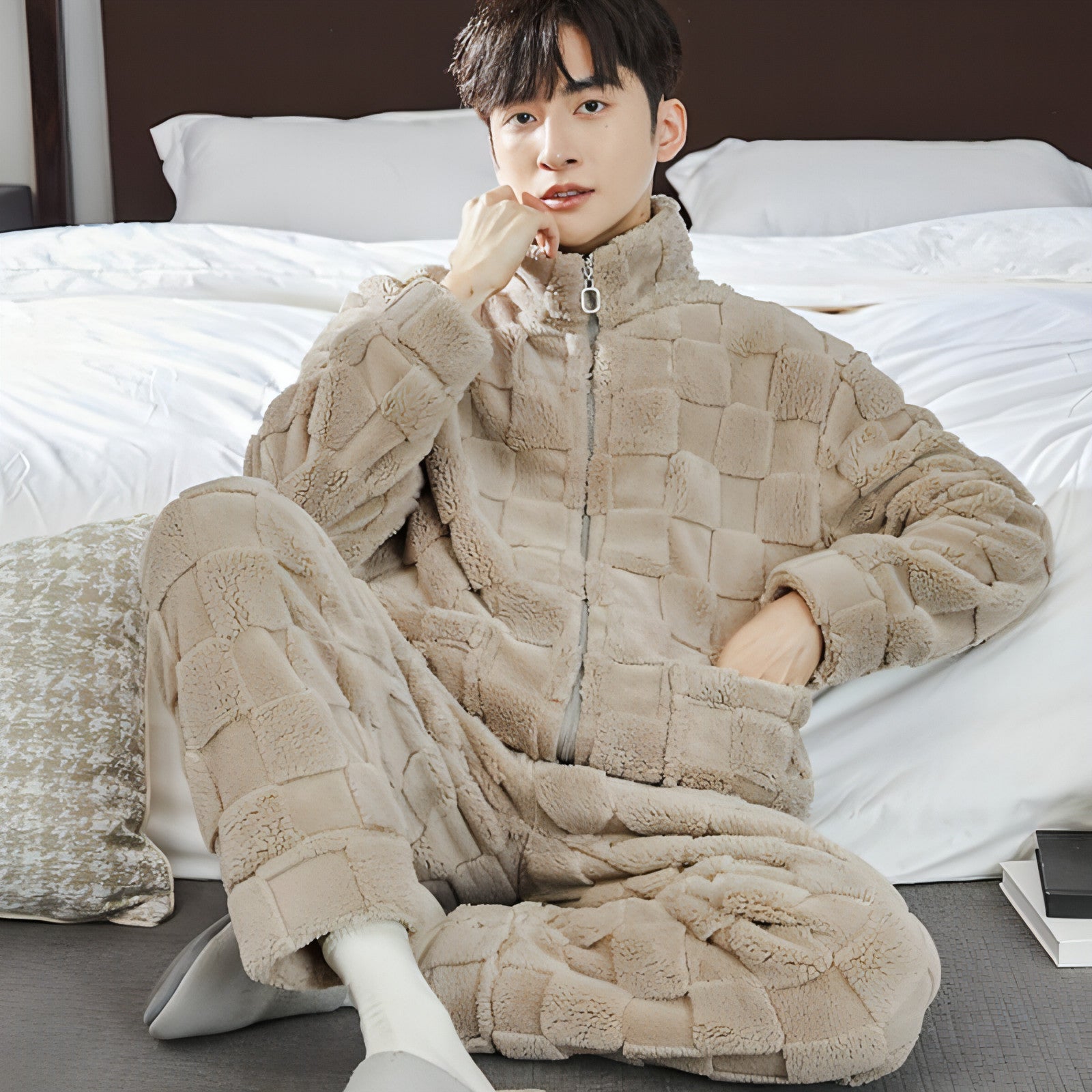 Don't miss out on the chance to elevate your loungewear with our Men's Jacquard Flannel Loose Fleece-lined Warm Loungewear. Experience the perfect blend of style and comfort that will keep you warm all winter long. Order yours today and enjoy the luxury of cozy pajamas that look as good as they feel!