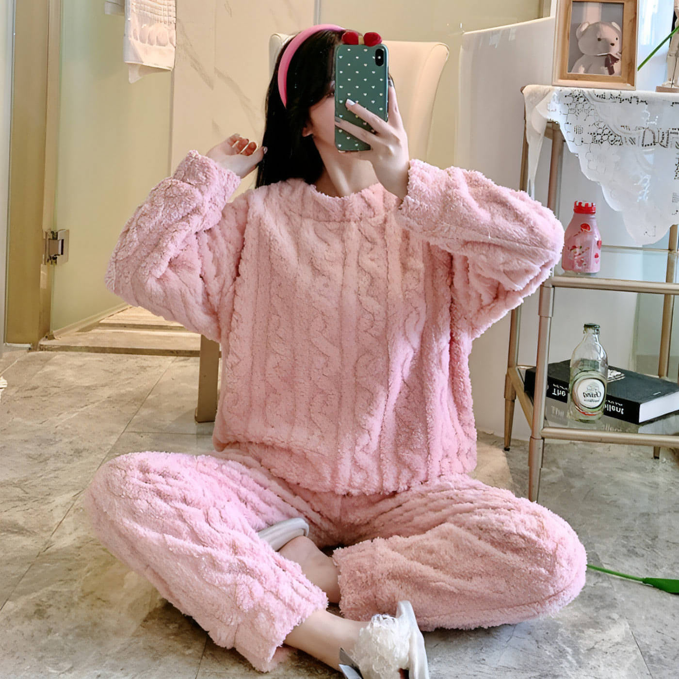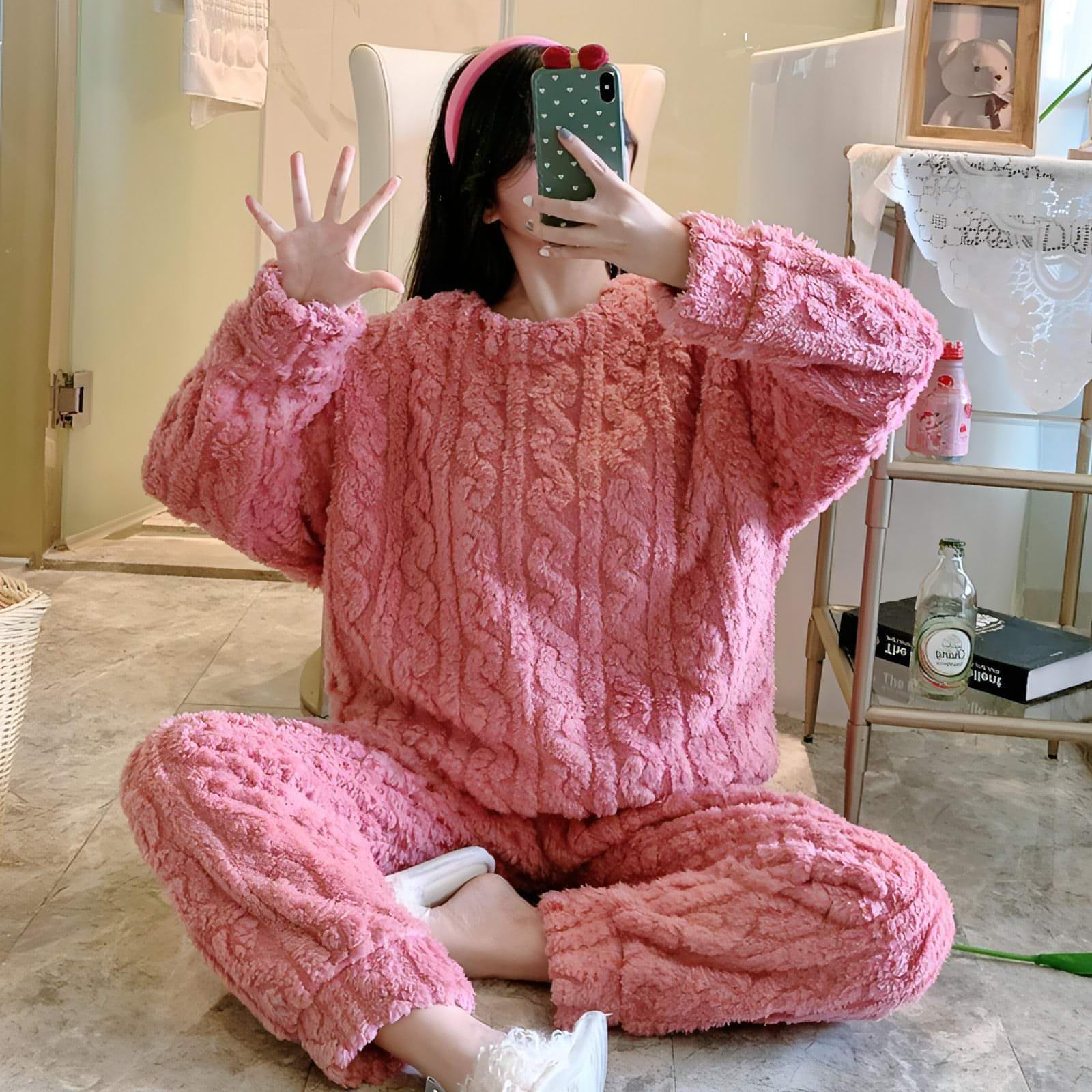 Don't miss out on the opportunity to upgrade your sleepwear collection with our Thick Fleece Pajamas Women's Thermal Round-neck Flannel Homewear Suit. With their combination of style, comfort, and durability, these pajamas are sure to become your go-to choice for cold nights. Order now and experience the ultimate comfort for your bedtime routine!