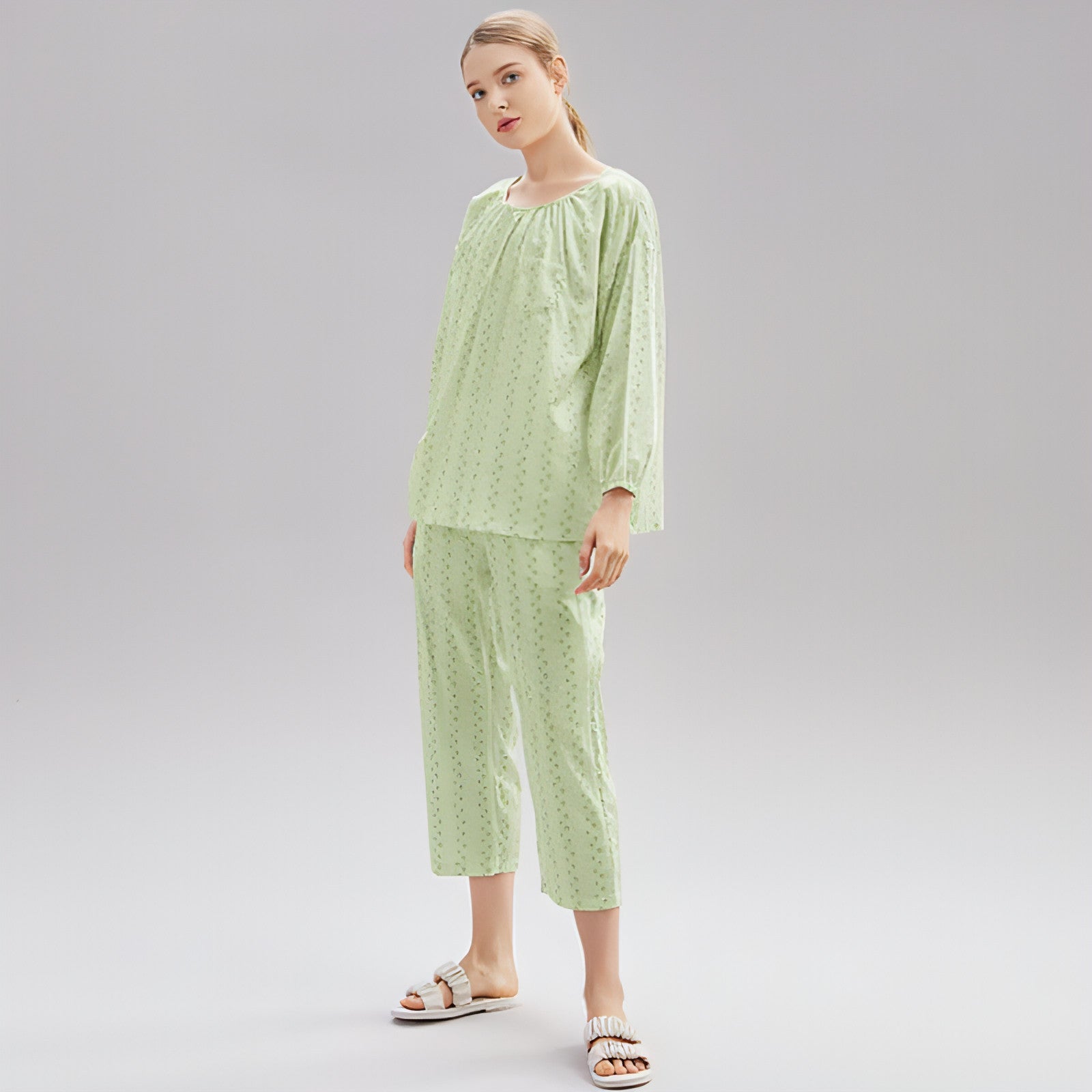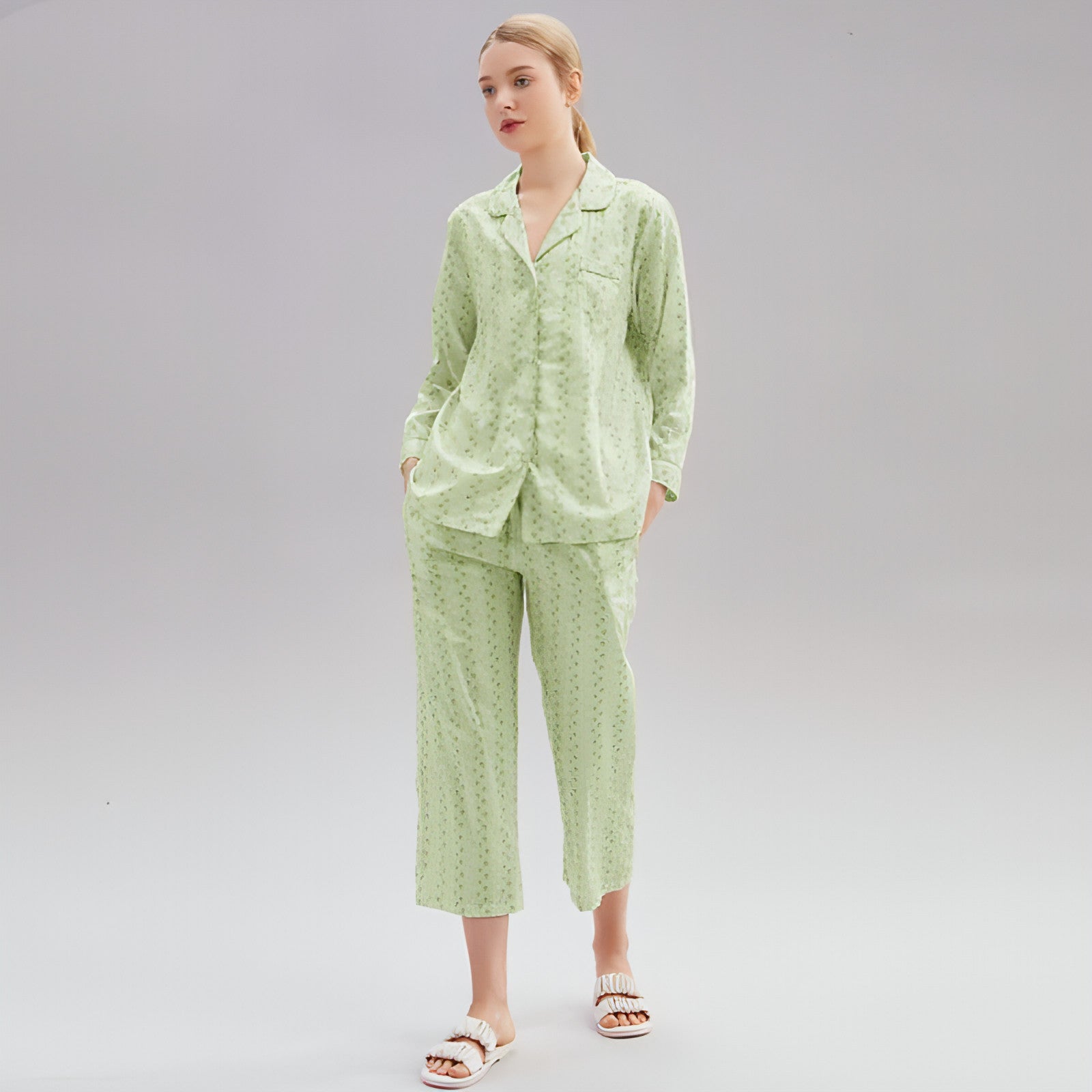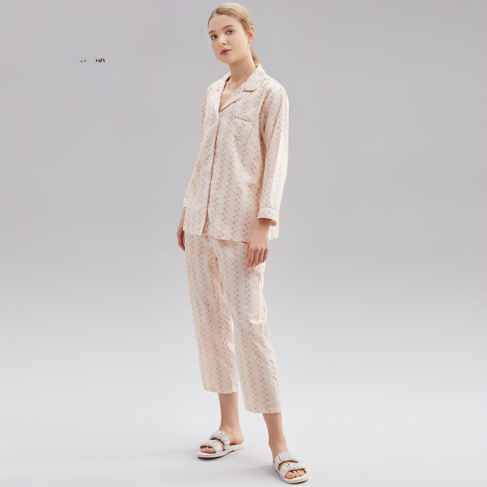Introducing our Women's Cotton Pajamas, the perfect blend of comfort and style for the spring season! These long-sleeved homewear pajamas are designed to provide you with the ultimate relaxation experience, making them an essential addition to your loungewear collection. Crafted from high-quality cotton, they are soft, breathable, and gentle on your skin, ensuring you feel comfortable whether you're enjoying a cozy night in or a leisurely day at home.