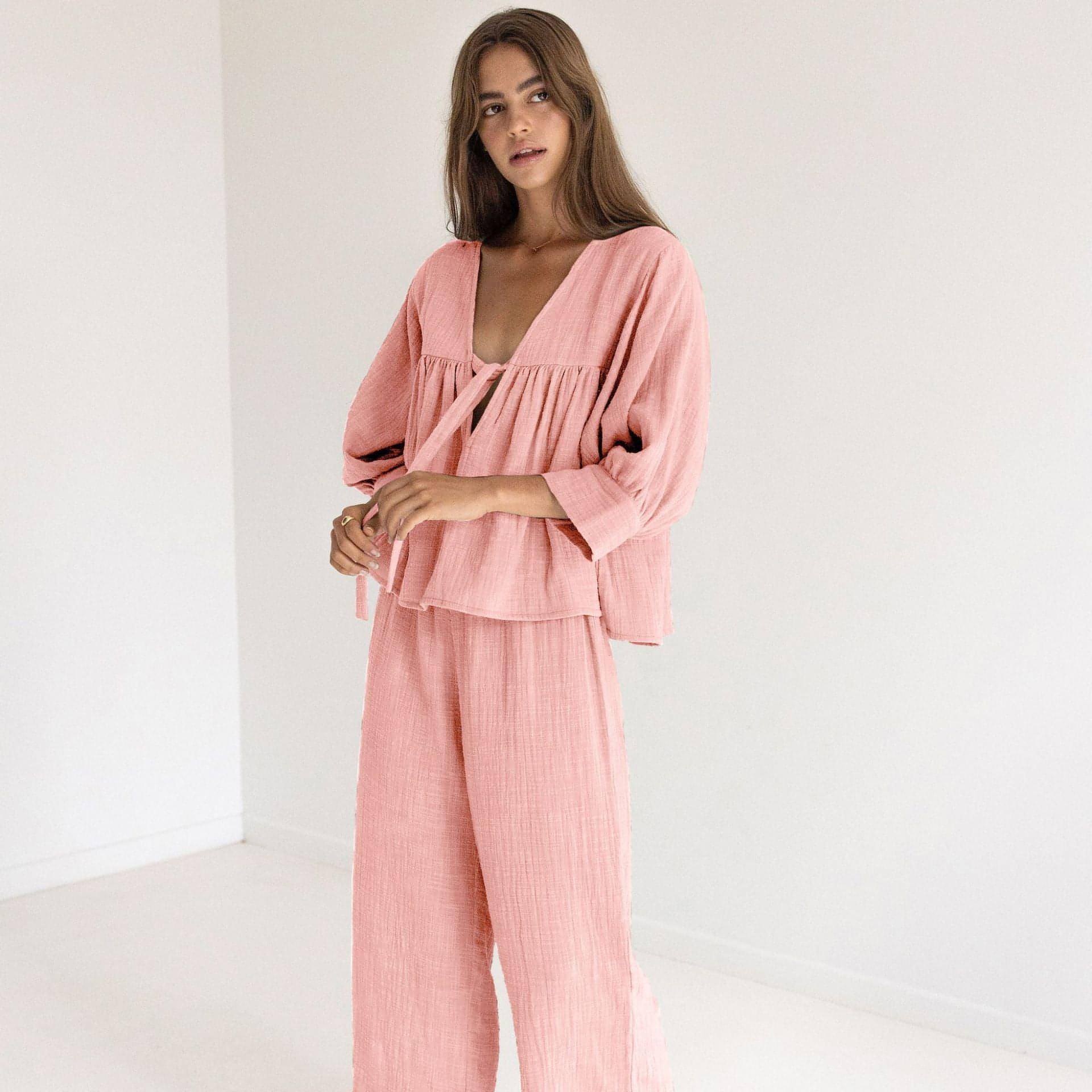 Elevate your loungewear collection with our Women's Fashion Long Sleeve Double-layer Crepe Pajamas Trousers. Made from soft and lightweight crepe material, with a double-layer design and loose fit, these pajama trousers provide ultimate comfort and style for any loungewear occasion. Upgrade your cozy nights in with our must-have pajama trousers today.