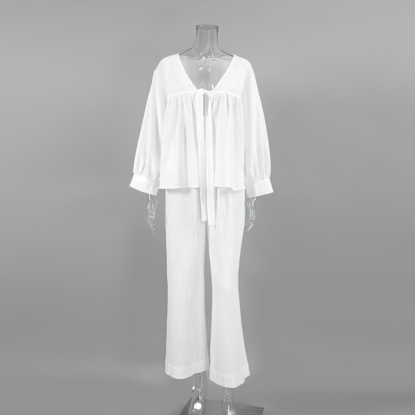 One of the standout features of our Women's Fashion Long Sleeve Double-layer Crepe Pajamas Trousers is the soft and lightweight crepe material. This fabric is not only gentle against the skin but also breathable, allowing for comfortable wear throughout the day and night. The long sleeves provide additional warmth, making these trousers perfect for chilly weather.