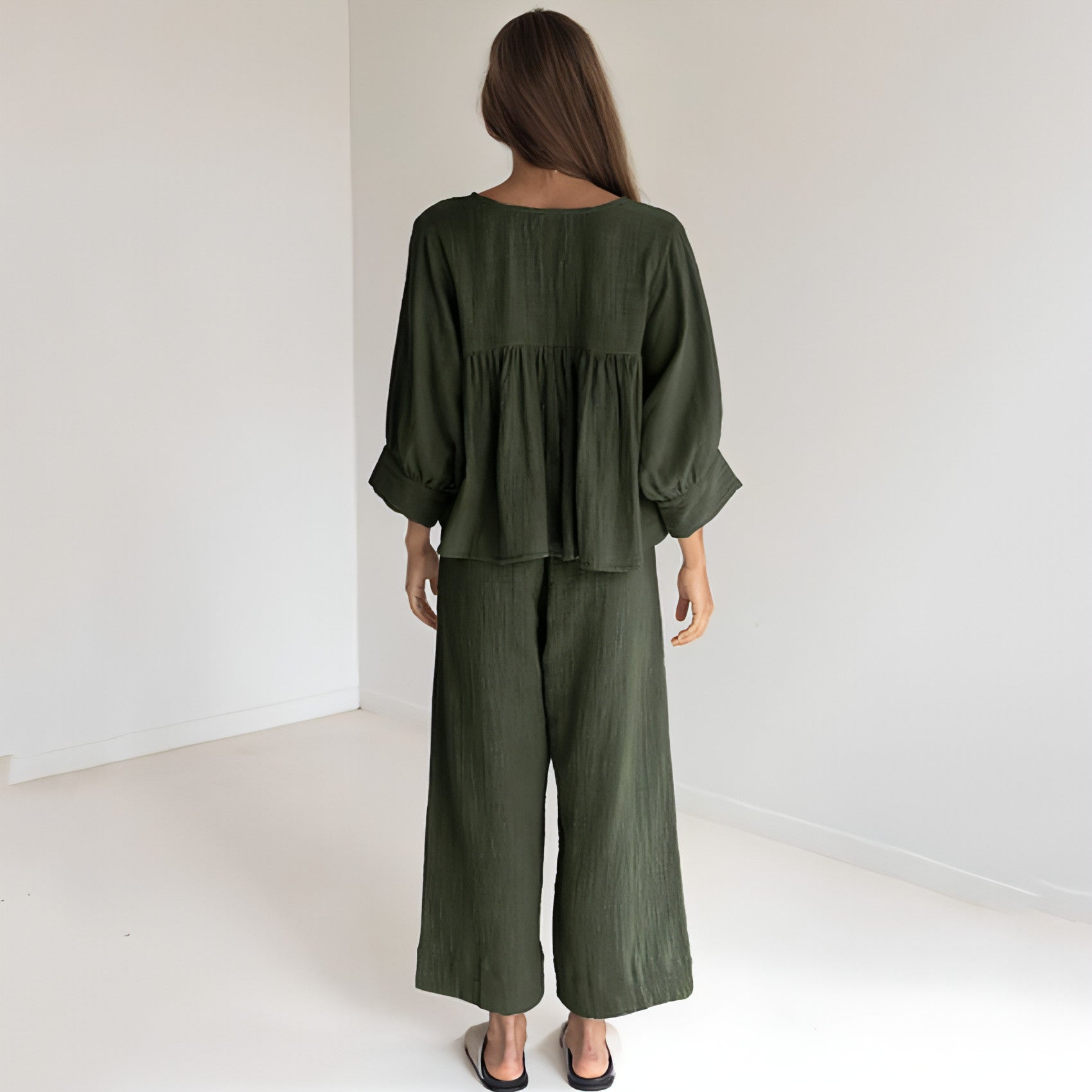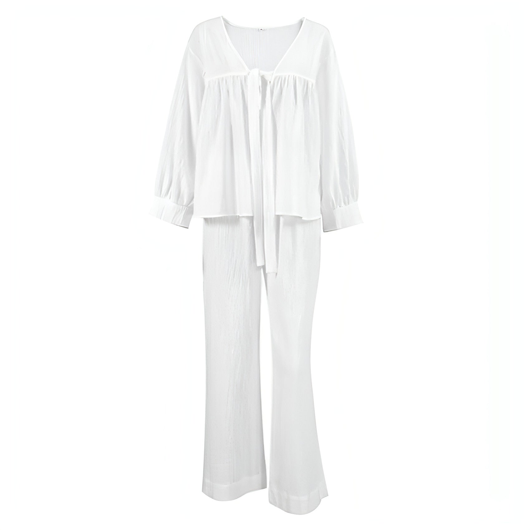 To keep your Women's Fashion Long Sleeve Double-layer Crepe Pajamas Trousers looking their best, we recommend machine washing them in cold water on a gentle cycle. Avoid using bleach and tumble dry on low heat. Iron on a low setting if necessary to maintain their smooth appearance.