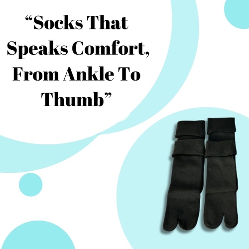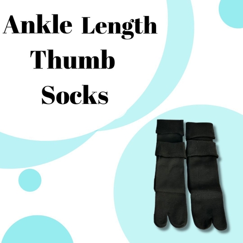 Ankle-length thumb socks are a unique type of foot accessory designed to cover the ankle and the base of the toes while leaving the thumb (big toe) exposed. These socks are typically made of soft, breathable materials like cotton, wool, or spandex to provide comfort and flexibility. They are often worn for fashion, comfort, or functional purposes, such as for yoga, pilates, or other activities that require bare toes for better grip or mobility. Ankle-length thumb socks come in a variety of colors and patterns, and they can be worn with sandals, open-toed shoes, or during activities that benefit from the freedom of movement in the toes. They combine the functionality of ankle socks with the added feature of thumb space for added comfort and style.