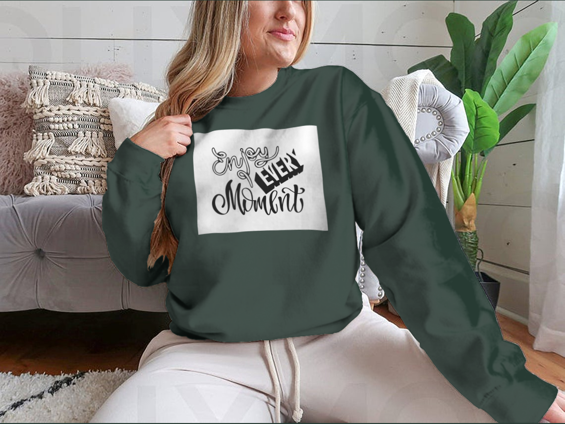 The Enjoy Every Moment shirt boasts a classic fit, making it suitable for all body types. The midweight fabric provides just the right amount of warmth without being too heavy, making it ideal for layering or wearing on its own. The taped neck and shoulders add an extra touch of comfort, ensuring that the shirt maintains its shape and fit even after multiple washes.