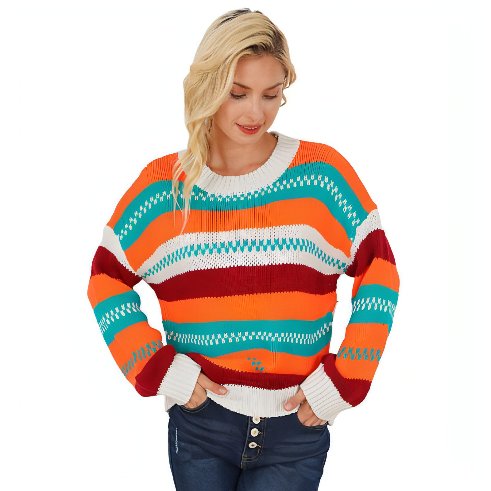 Don't miss out on the opportunity to enhance your wardrobe with the Loose Color Pullover Regular Sleeve Sweater for Women. Its combination of comfort, style, and vibrant colors makes it a perfect addition to any outfit. Shop now and experience the perfect blend of fashion and functionality!