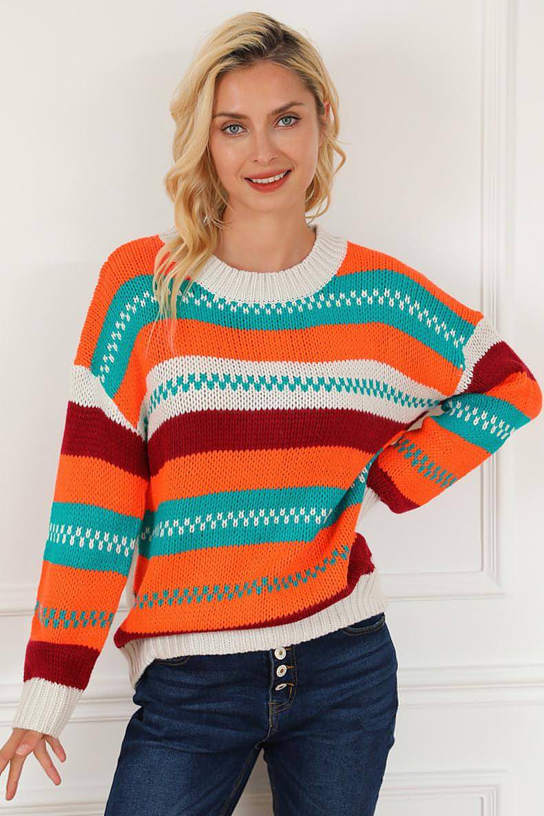 Introducing the Loose Color Pullover Regular Sleeve Sweater for Women, a perfect blend of style and comfort. This sweater is designed to elevate your wardrobe with its vibrant colors and relaxed fit, making it an essential piece for any fashion-forward woman. Whether you're dressing up for a casual outing or lounging at home, this sweater provides the versatility you need.