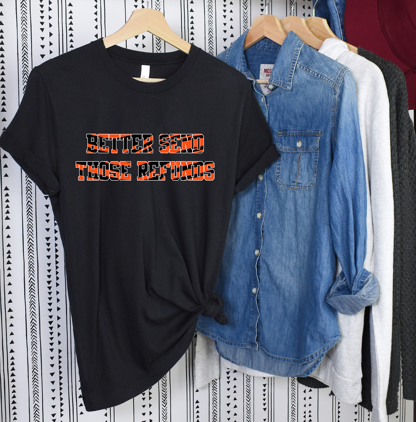 In summary, the Better Send Those Refunds Unisex T-shirt is a must-have for anyone looking to enhance their casual wardrobe. With its quality printing, comfortable fabric, and unique design, it’s perfect for expressing your individuality. Don’t miss out on the chance to own this stylish t-shirt!