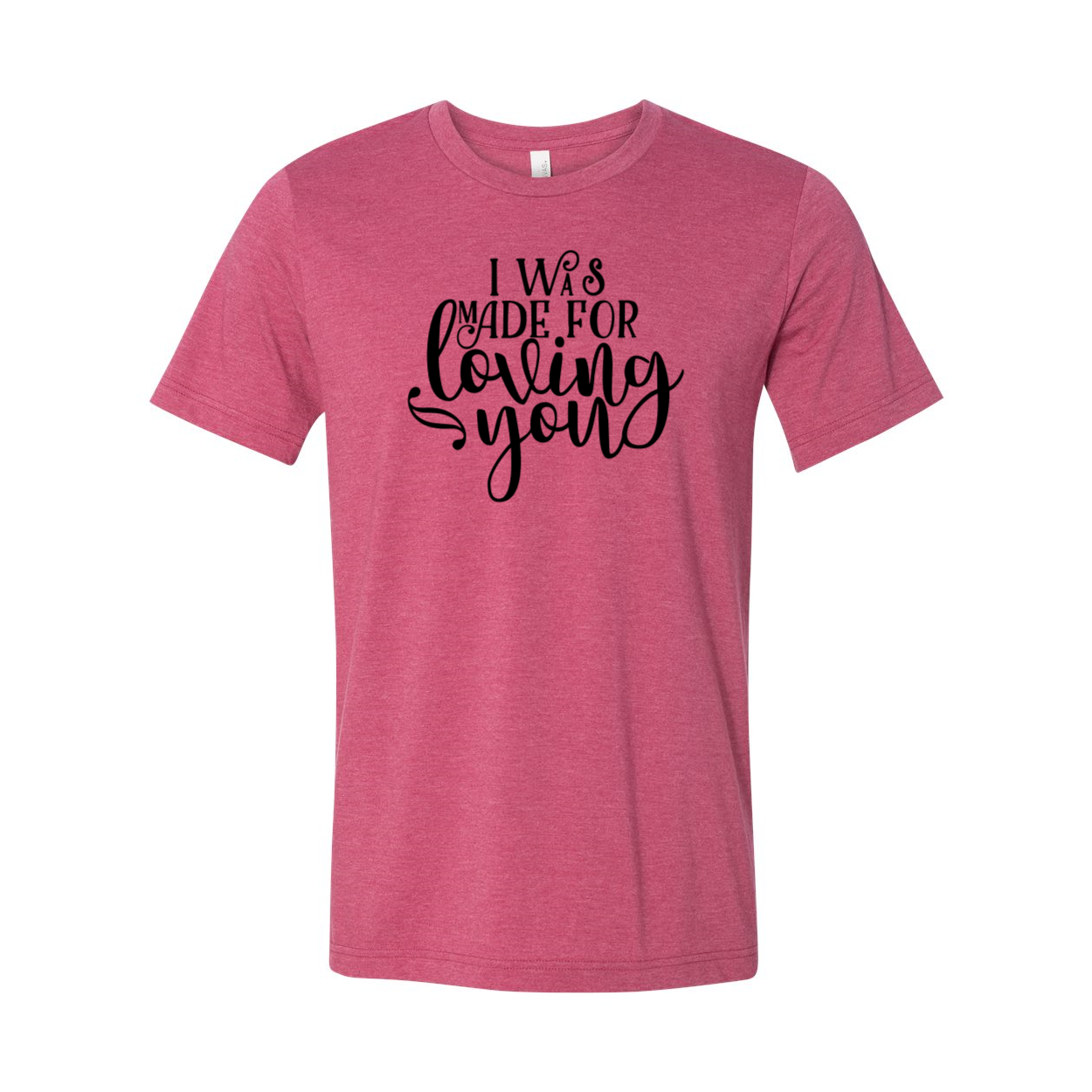 The I Was Made For Loving You Shirt features a classic crew neck and short sleeves, giving it a timeless look that never goes out of style. The slightly slimmer body and shorter sleeves create a modern silhouette that flatters all body types. This shirt is designed to fit like a well-loved favorite, making it a go-to choice for any occasion.
