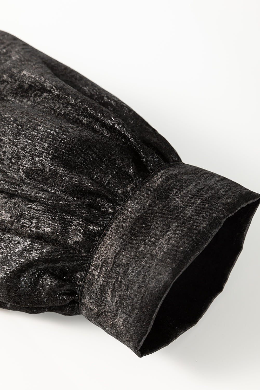 To maintain the beauty of your Black Metallic Frilled V Neck Puff Sleeve Babydoll Blouse, it is essential to follow proper care instructions. Hand wash in cold water with a gentle detergent to preserve the metallic finish and frilled details. Avoid using bleach or harsh chemicals, as these can damage the fabric. Hang to dry or lay flat to prevent stretching, and iron on a low setting if needed, taking care to avoid direct contact with the metallic areas.