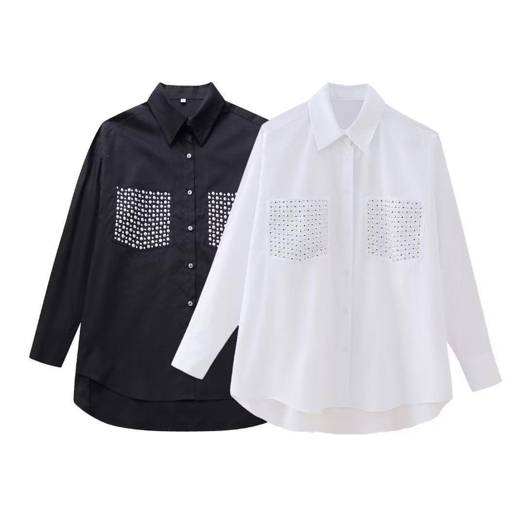 In summary, the Street Trendy Rivet Ornament Loose Long Sleeve Shirt for Women is not just a shirt; it's a statement piece that combines fashion and comfort. With its stylish design and versatile wearability, it's the ideal choice for women who want to express their individuality and keep up with the latest trends. Elevate your style today!