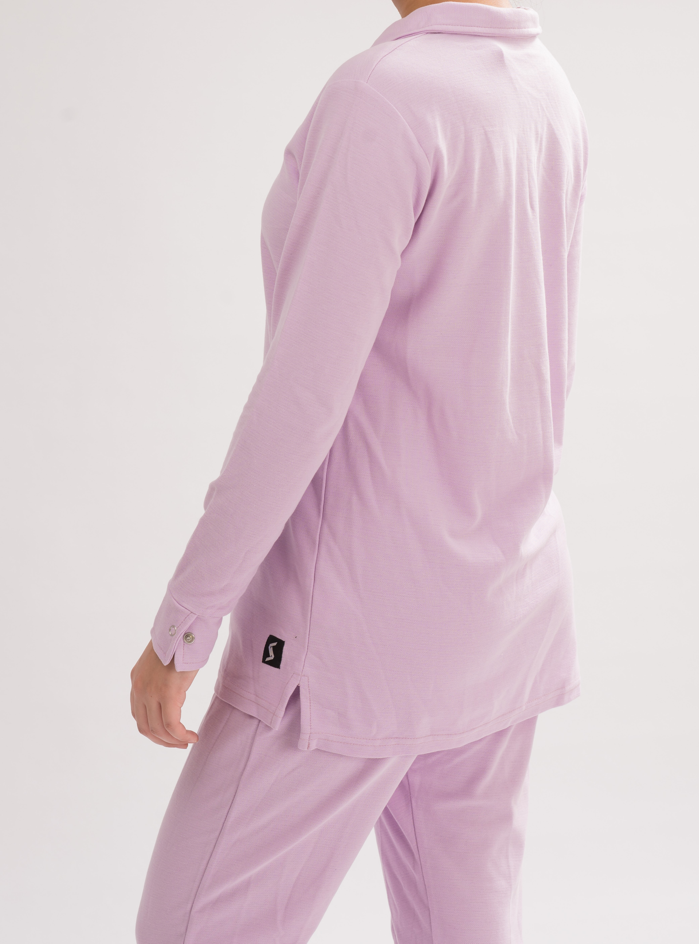Introducing the Women’s Long Sleeve Polo Shirt in the stunning Orchid Bloom color, a perfect blend of style and comfort. This shirt is designed to elevate your wardrobe with its classic and versatile hue, making it an essential piece for any fashion-forward woman. Whether you're dressing up for a casual outing or looking to add a chic touch to your everyday attire, this polo shirt is the ideal choice.