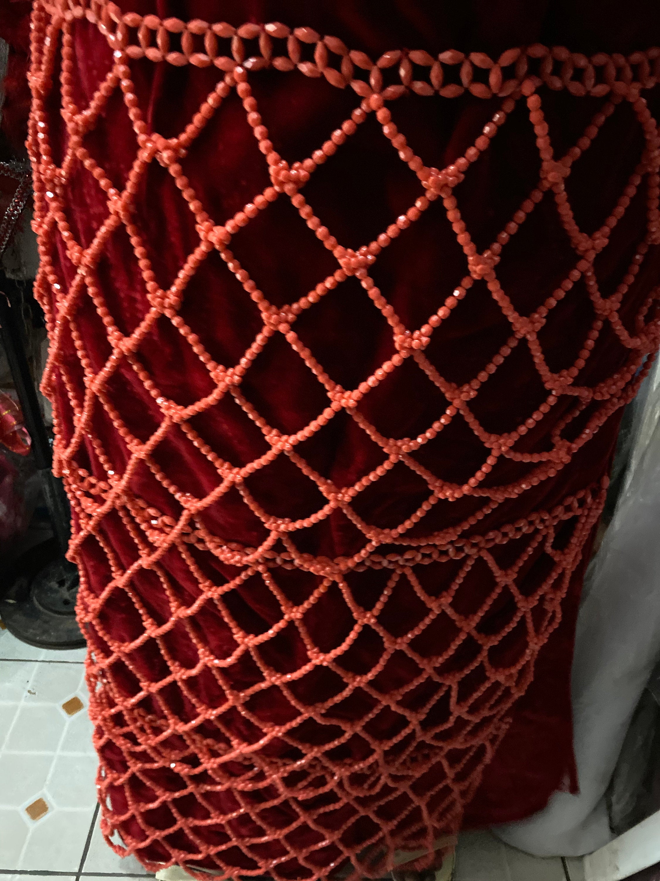 The Edo traditional wrapper, also known as the Benin fully beaded velvet attire, is a beautiful representation of African culture and craftsmanship. This exquisite piece is designed specifically for women, making it a perfect choice for brides and those attending special occasions. The wrapper is made from luxurious velvet fabric, providing both comfort and elegance.