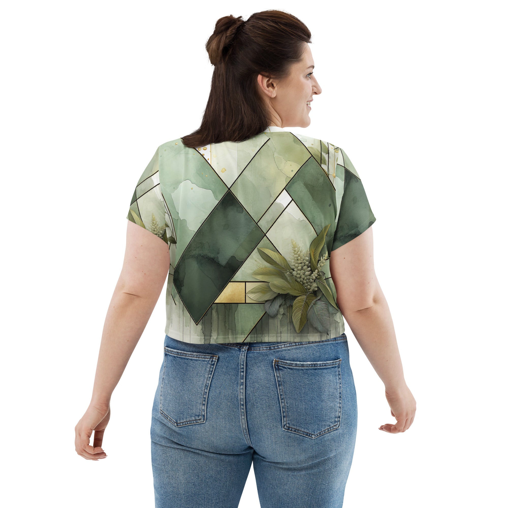 The Olive Green Mint Leaf geometric print adds a unique touch to your wardrobe, making it a standout piece. The cropped silhouette is not only fashionable but also pairs beautifully with high-waisted jeans, shorts, or skirts, allowing you to create multiple stylish outfits effortlessly. The crew neckline and short sleeves enhance its laid-back appeal, making it a versatile choice for any casual outing.