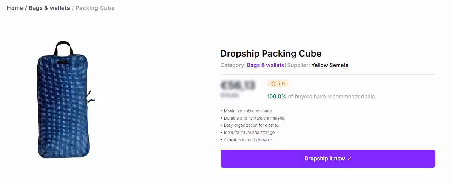 Una de las mayores ventajas de Spocket es su cuidada red de proveedores. Los productos suelen cumplir con estándares de calidad más altos, lo que ayuda a reducir las quejas y devoluciones de los clientes. En el caso de los accesorios de viaje, como los cubos de embalaje, los organizadores de cables y las bolsas de viaje, una entrega más rápida puede mejorar considerablemente la experiencia del cliente y aumentar la repetición de las compras.