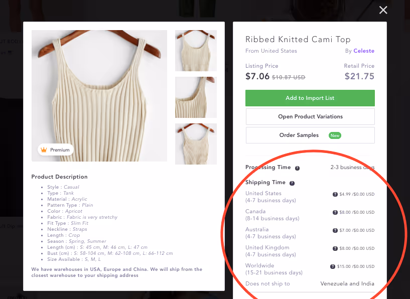 Seleziono sempre prodotti che so che non ci penserei due volte prima di acquistarli. Controllo i prezzi, i costi di spedizione e le informazioni fornite dai grossisti di dropshipping. Quindi faccio la domanda: comprerei davvero questo prodotto da solo?