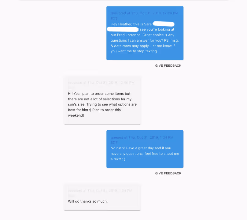 Queste conversazioni sono incredibilmente personalizzate, con me che consiglio manualmente i prodotti che vorrebbero.