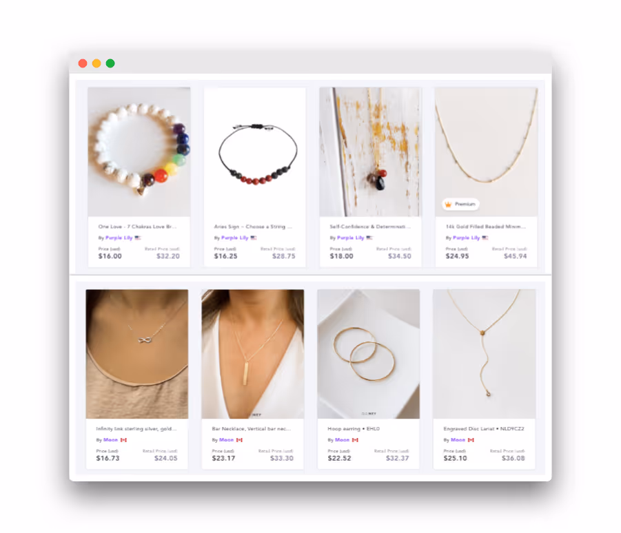 Mentre marchi esclusivi e di fascia alta come Agnes e Beaufille stanno conquistando la parte superiore del mercato, i proprietari di negozi di piccole imprese possono soddisfare un pubblico con una capacità di spesa di fascia media. I fornitori di gioielli minimali possono essere trovati abbastanza facilmente su Spocket.