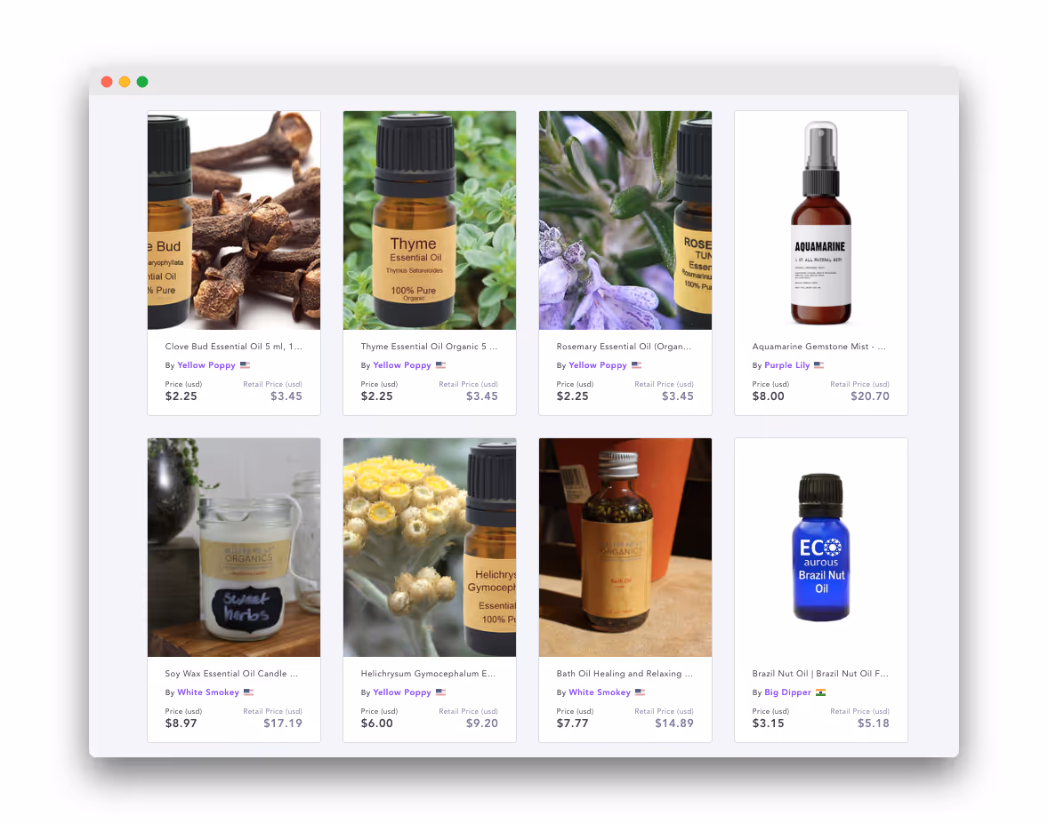 Puoi trovare un gran numero di oli essenziali provenienti dall'India e dagli Stati Uniti qui: